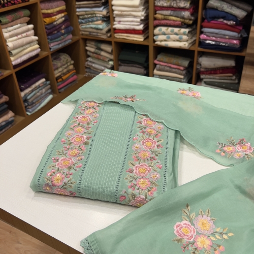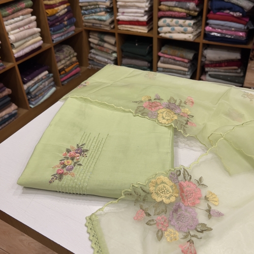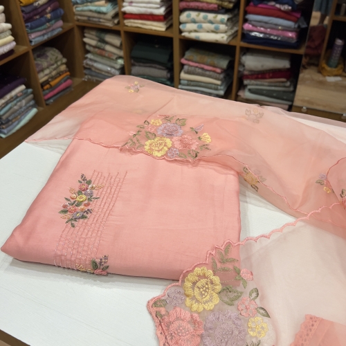 CHU20 Chanderi Top , Shantoon & Organza Dupatta