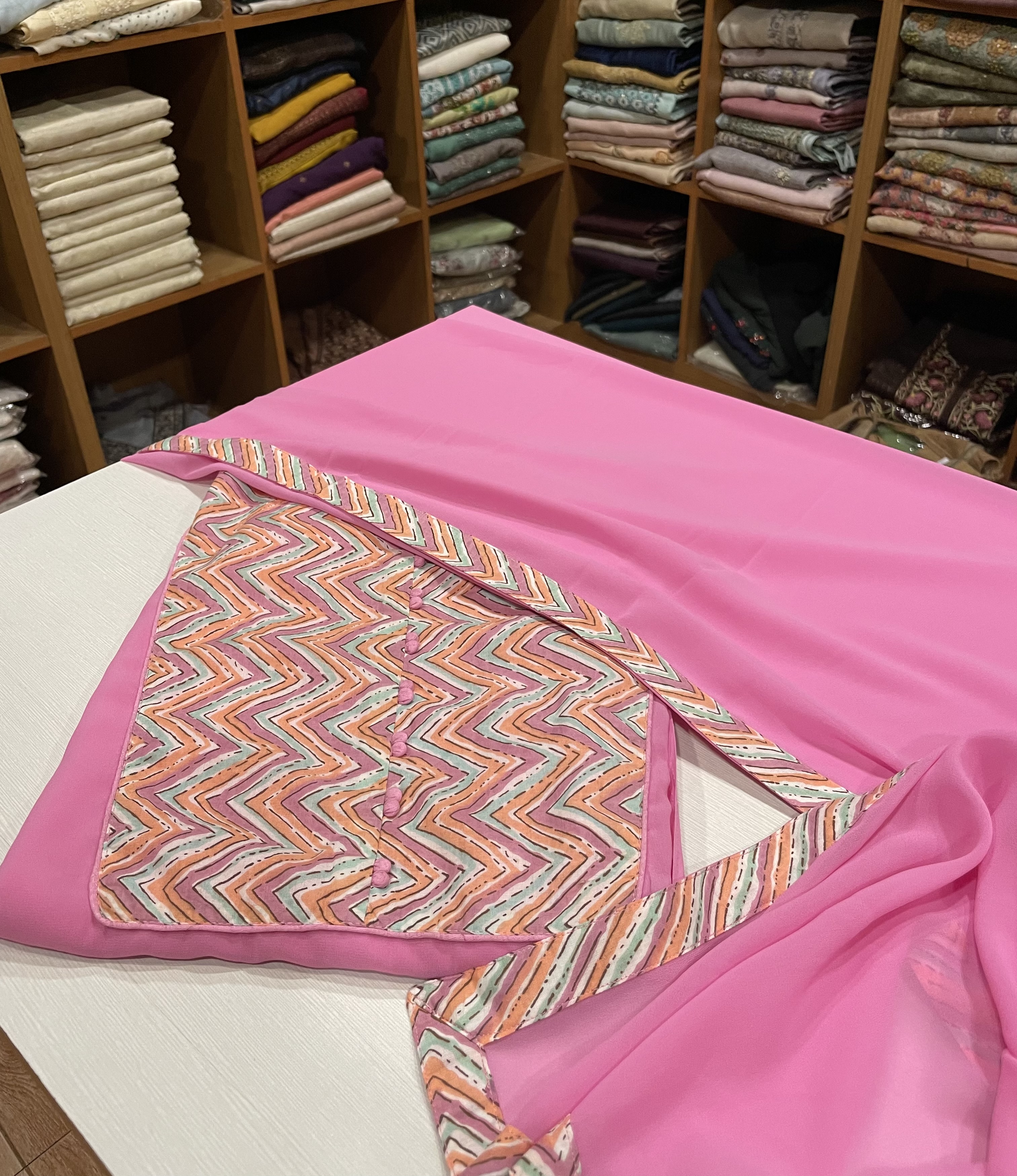 CS Georgette Top With Cotton Yoke , Cotton Silk Bottom & Georgette Dupatta