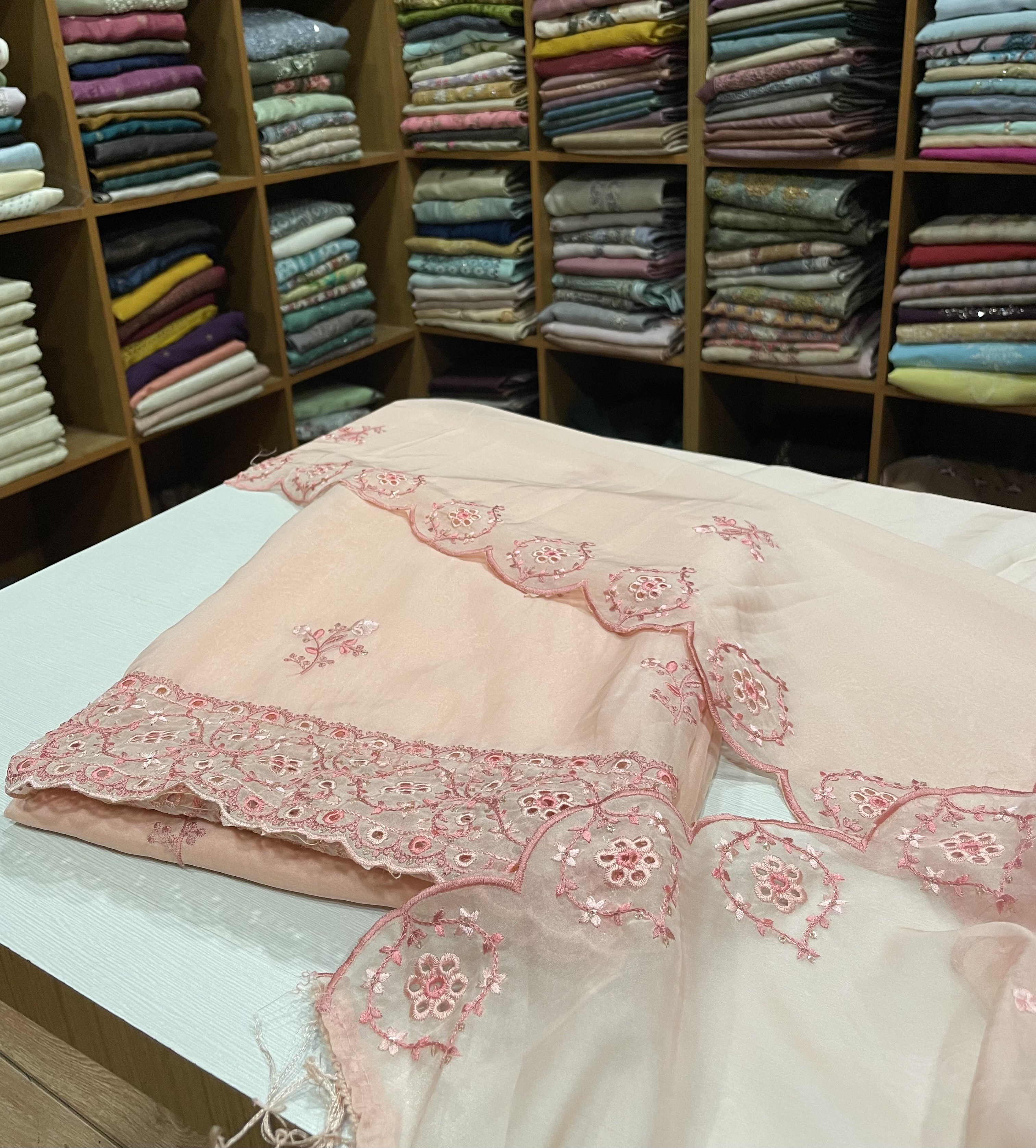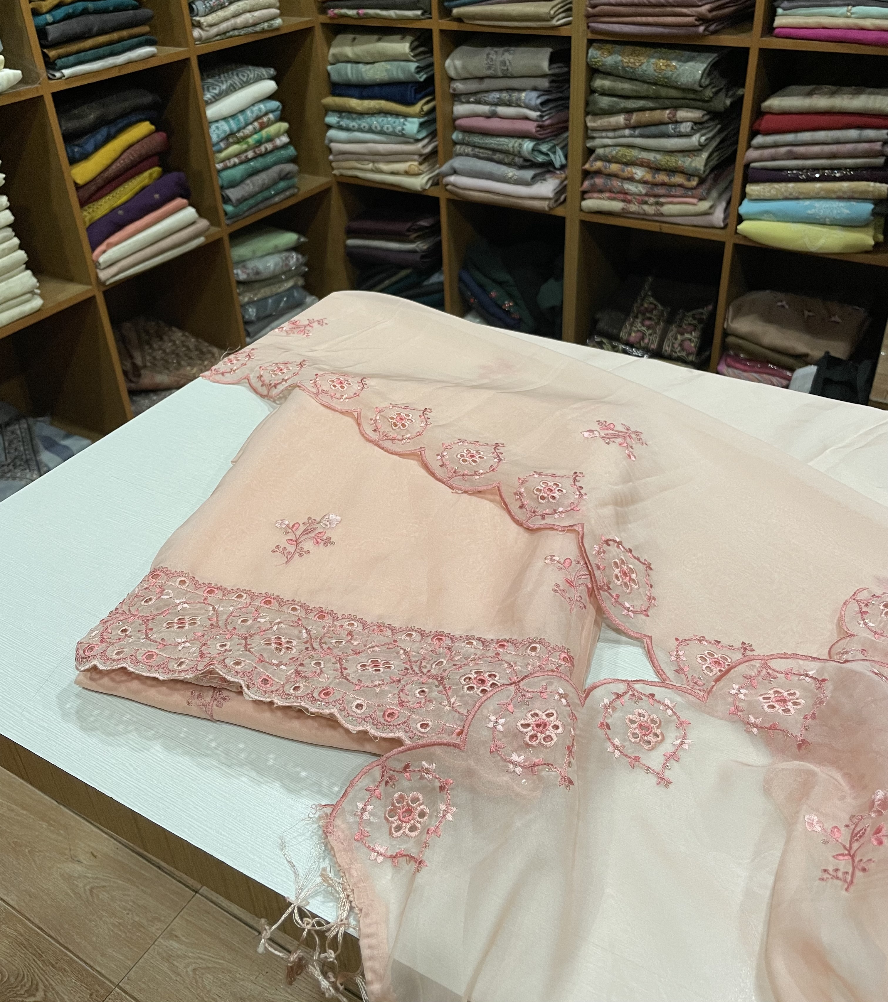 CS Peach Organza Top , Shantoon Bottom & Organza Dupatta