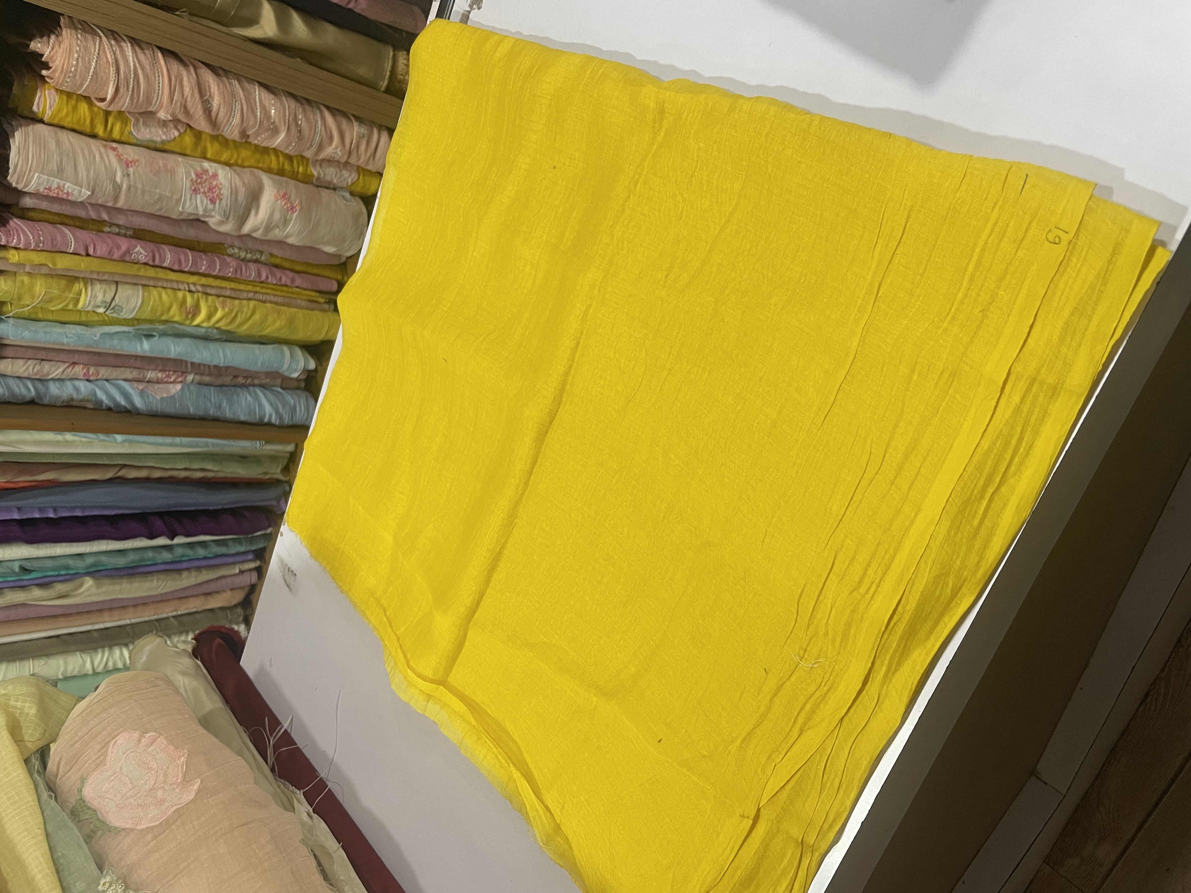 CUT - Yellow Plain Chanderi Last Piece 1.75 Mtr