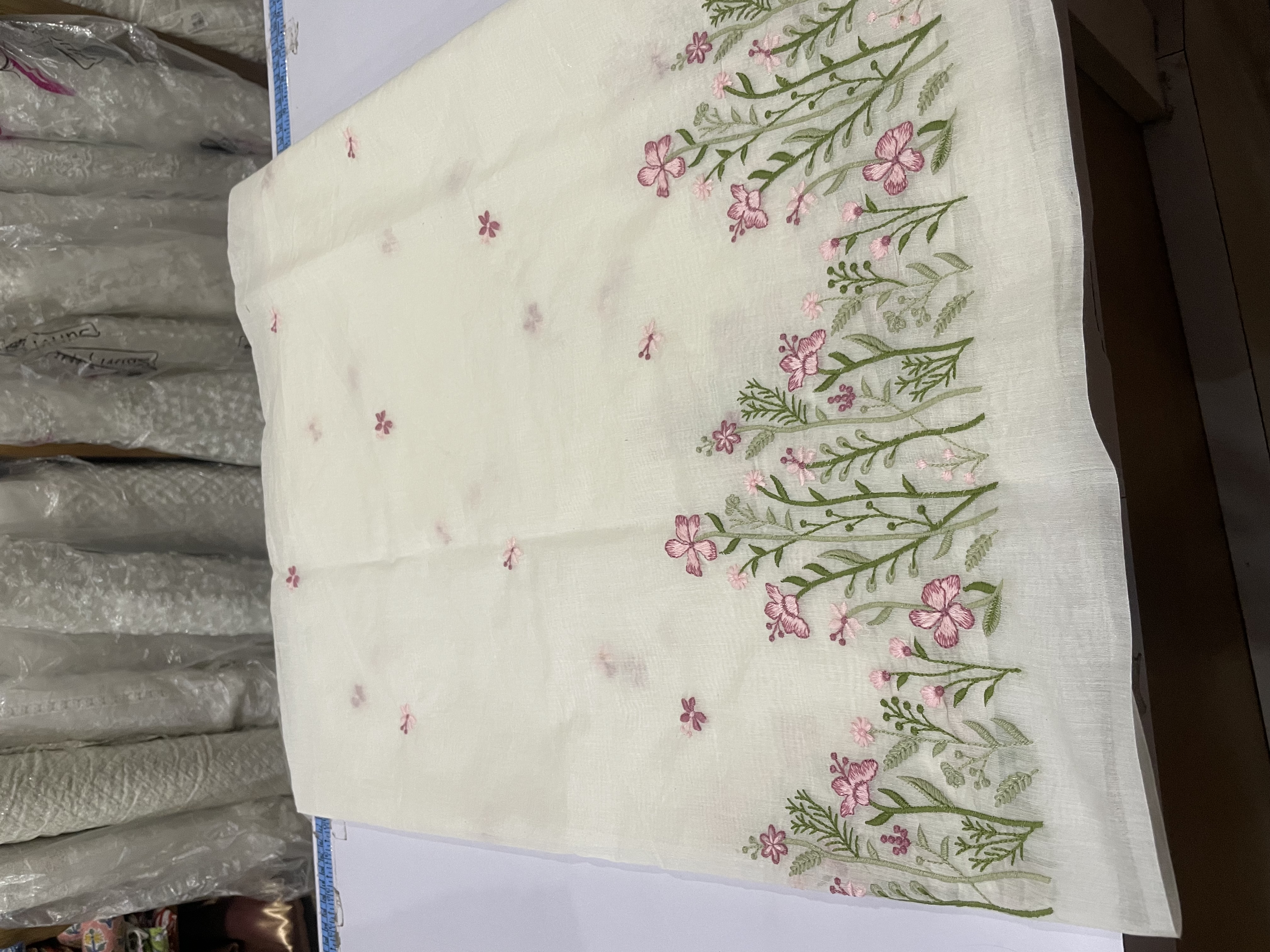 CUT1 - Mul Chanderi Embroidered Last Piece 1.50 Mtr
