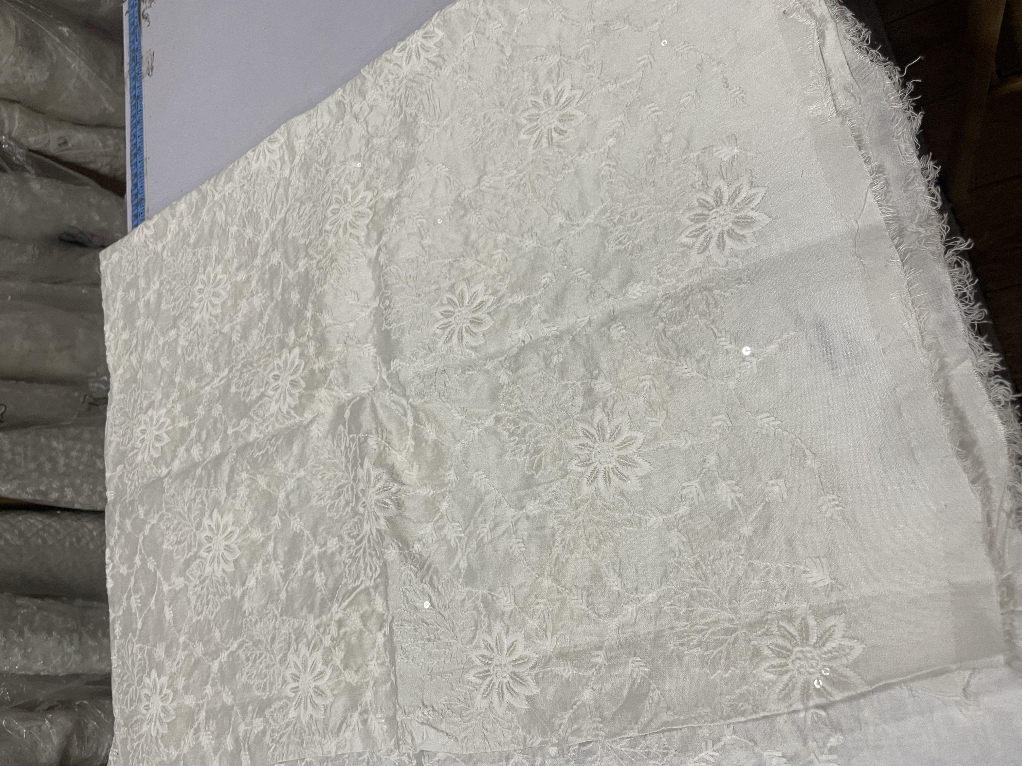 CUT2-Embroidered Chanderi Last Piece .80 Mtr
