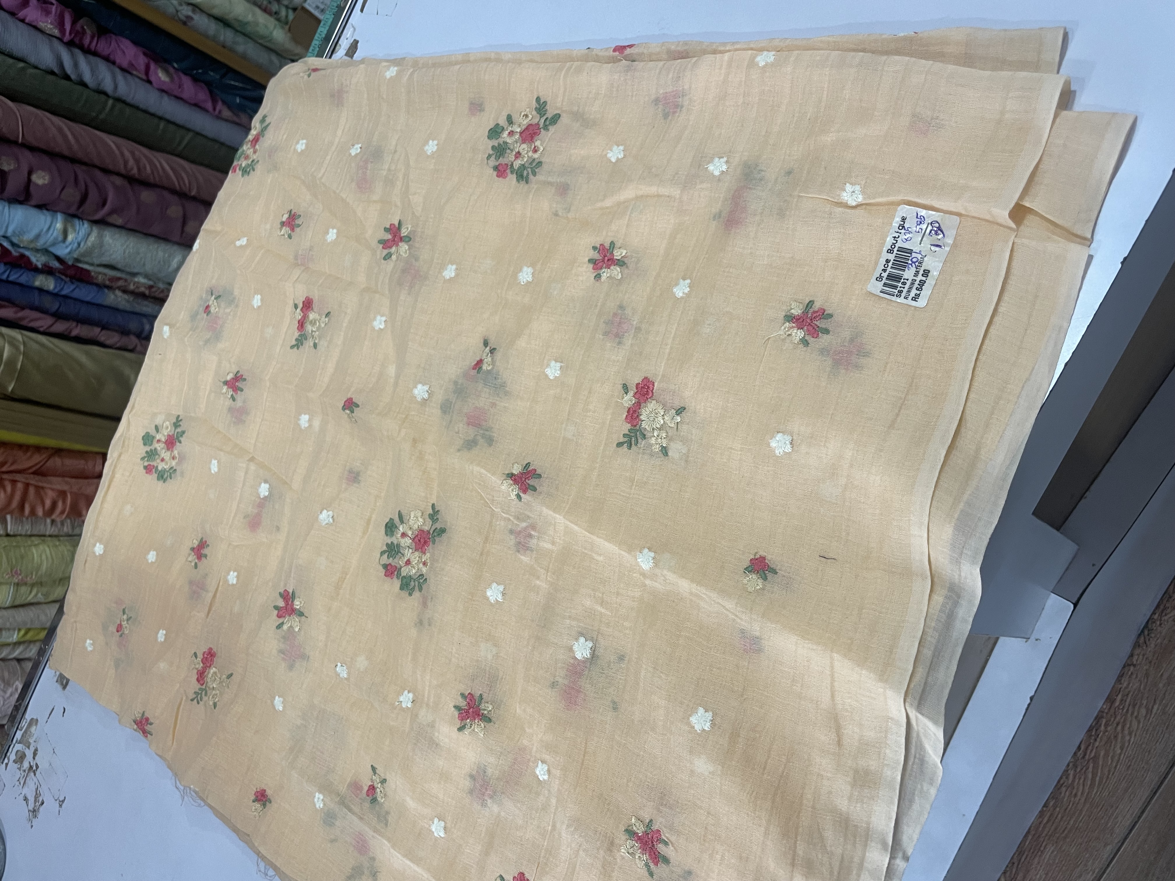 CUT3 - Embroidered Mul Chanderi Last Piece 1.30 Mtr