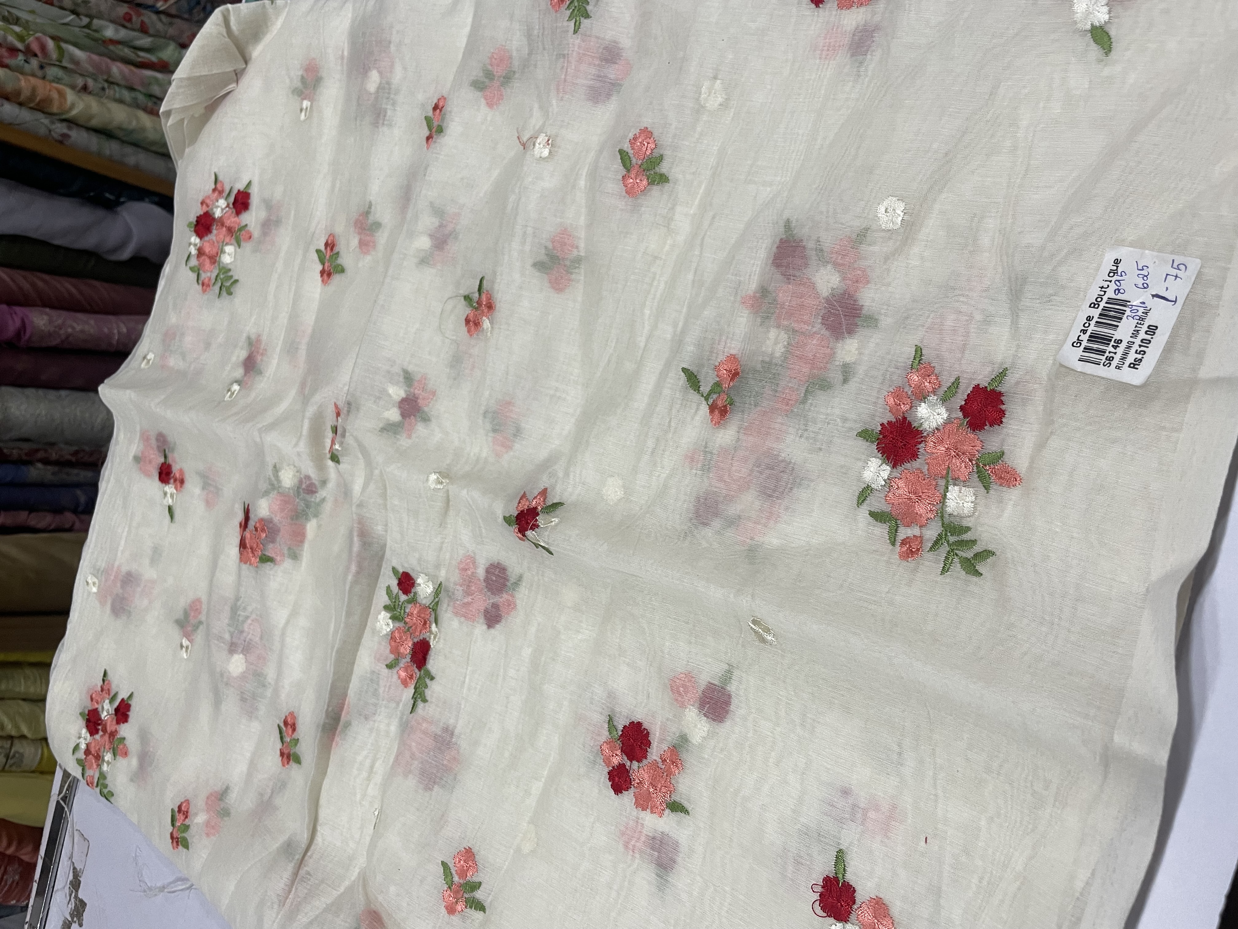 CUT6 - Embroidered Chanderi Last Piece 1.75 Mtr
