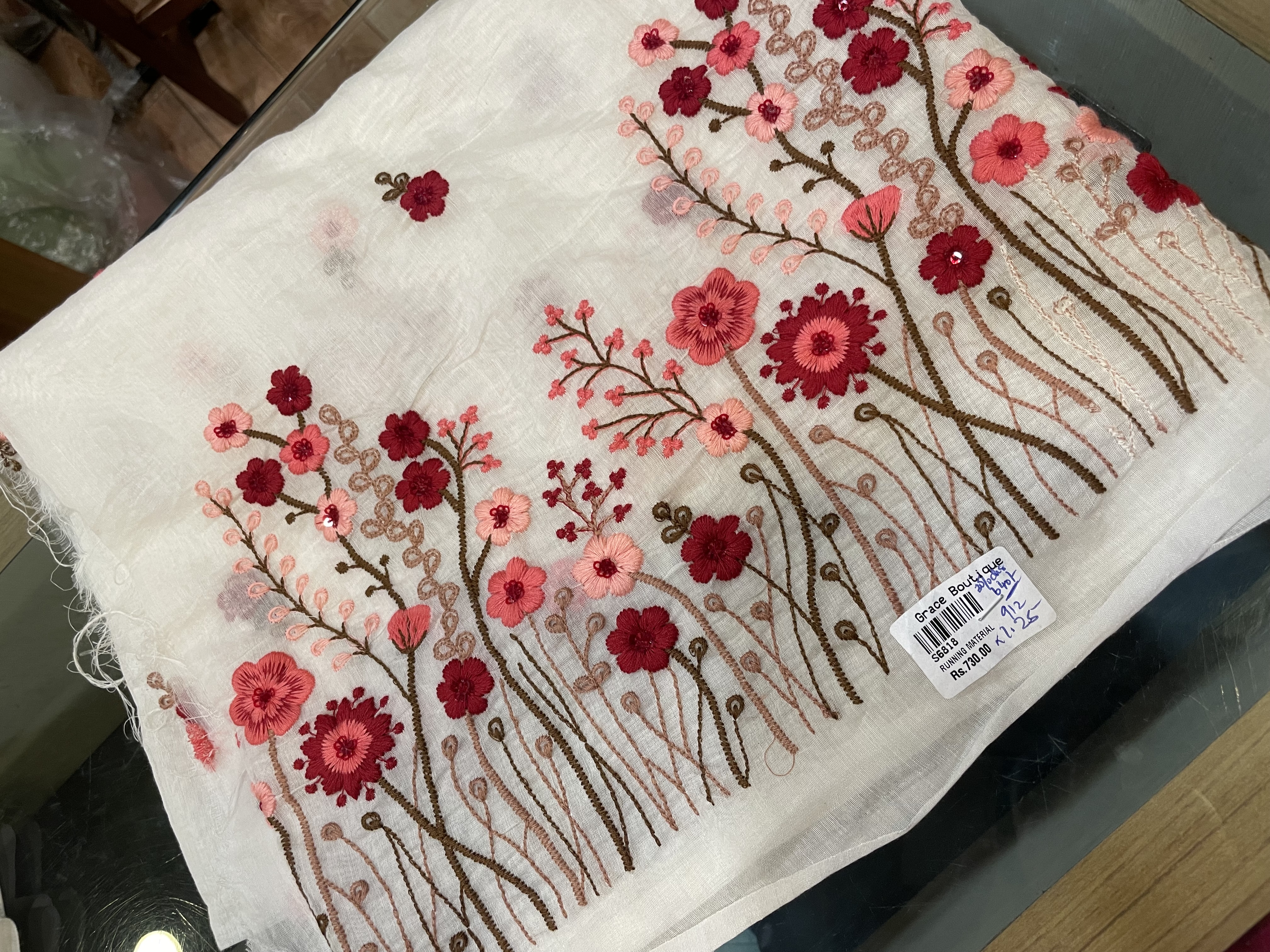 FMC3 - Embroidered Mul Chanderi CUT Last Piece -1.25