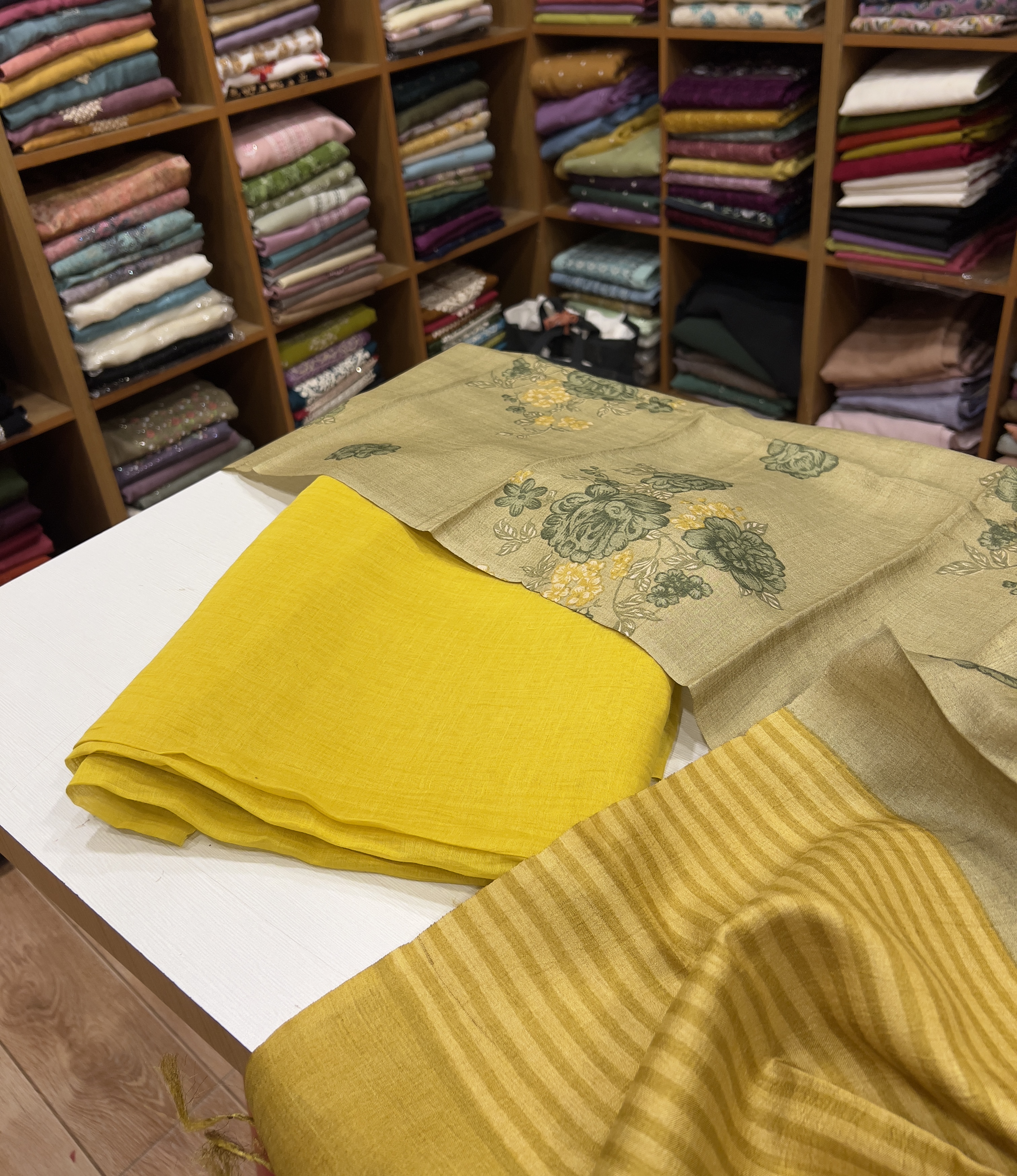 EST10 Mul Chanderi Top , Cotton Silk Bottom & Pure Tussar Silk Dupatta