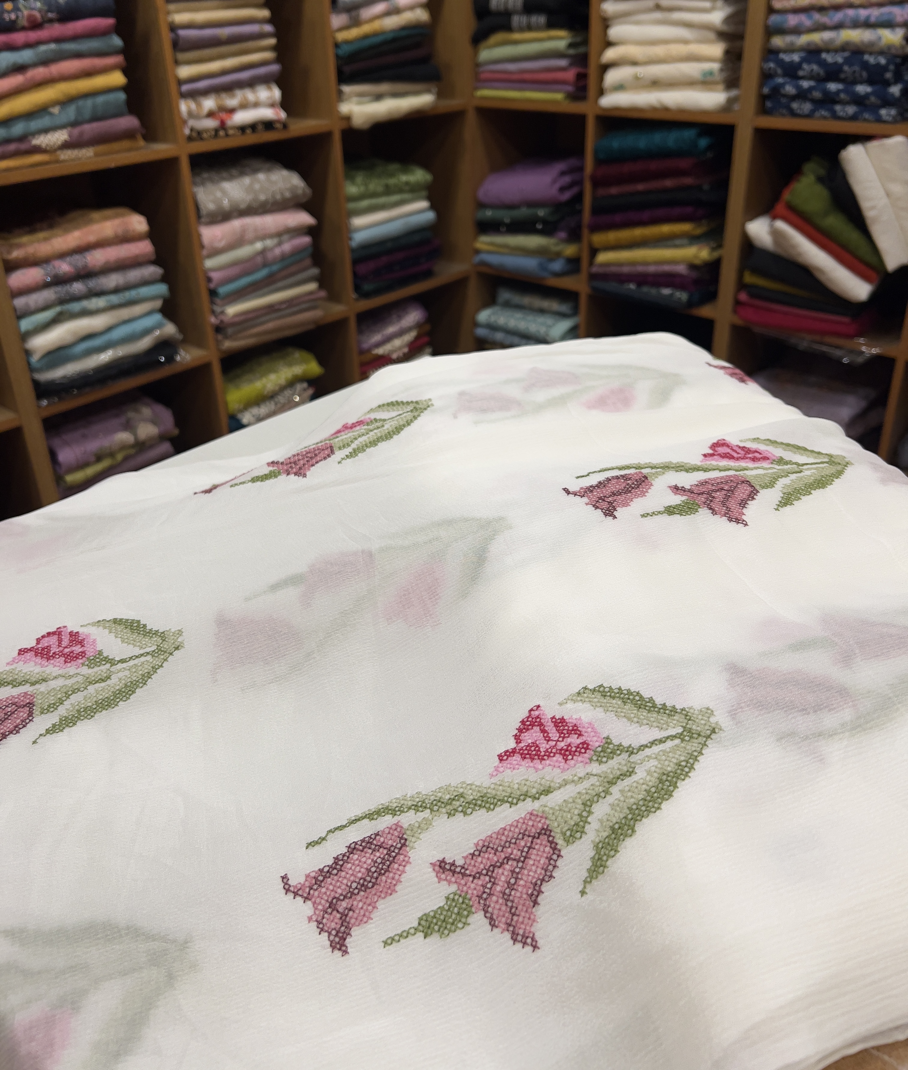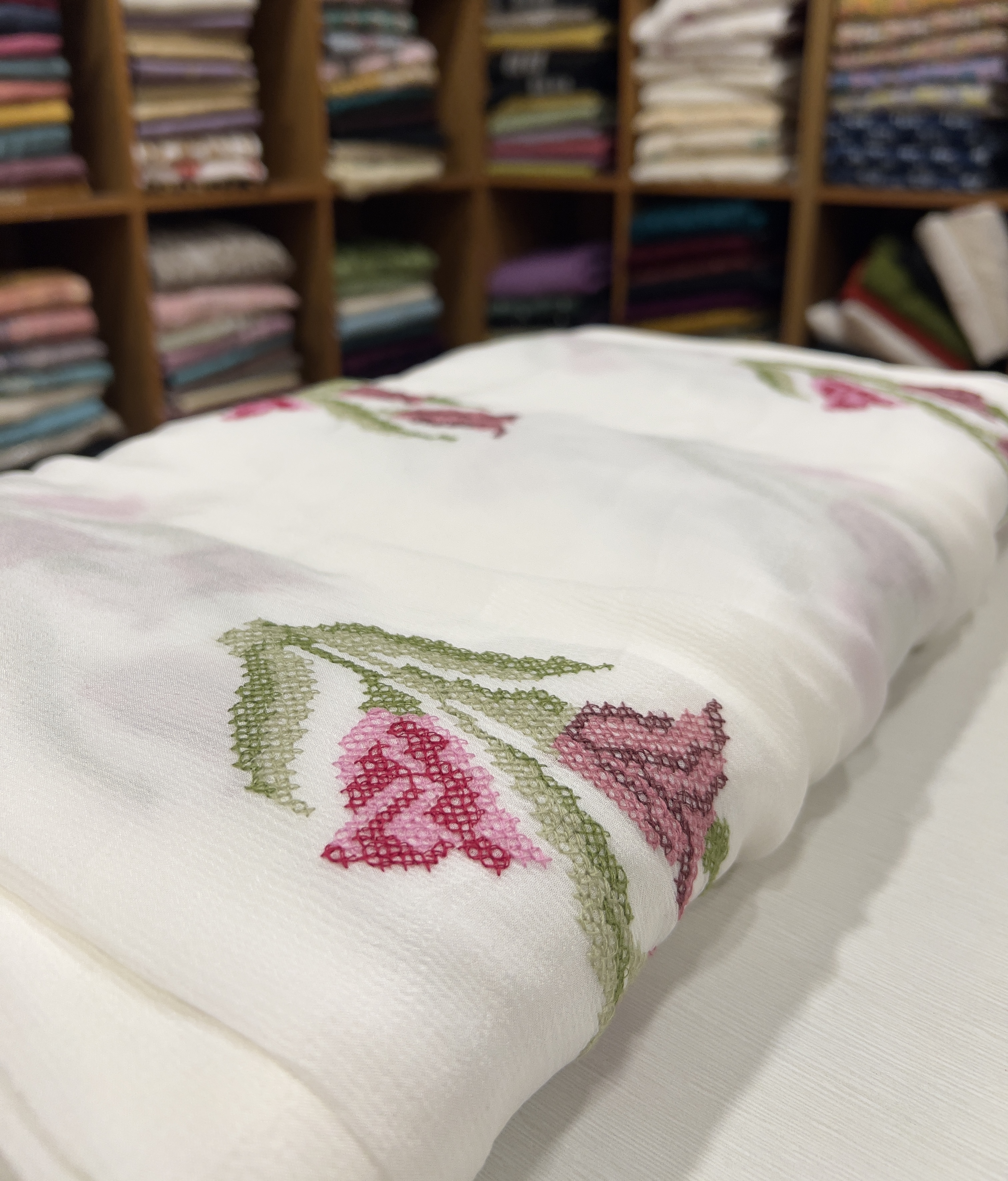 EST11 Embroidered Chiffon Offwhite