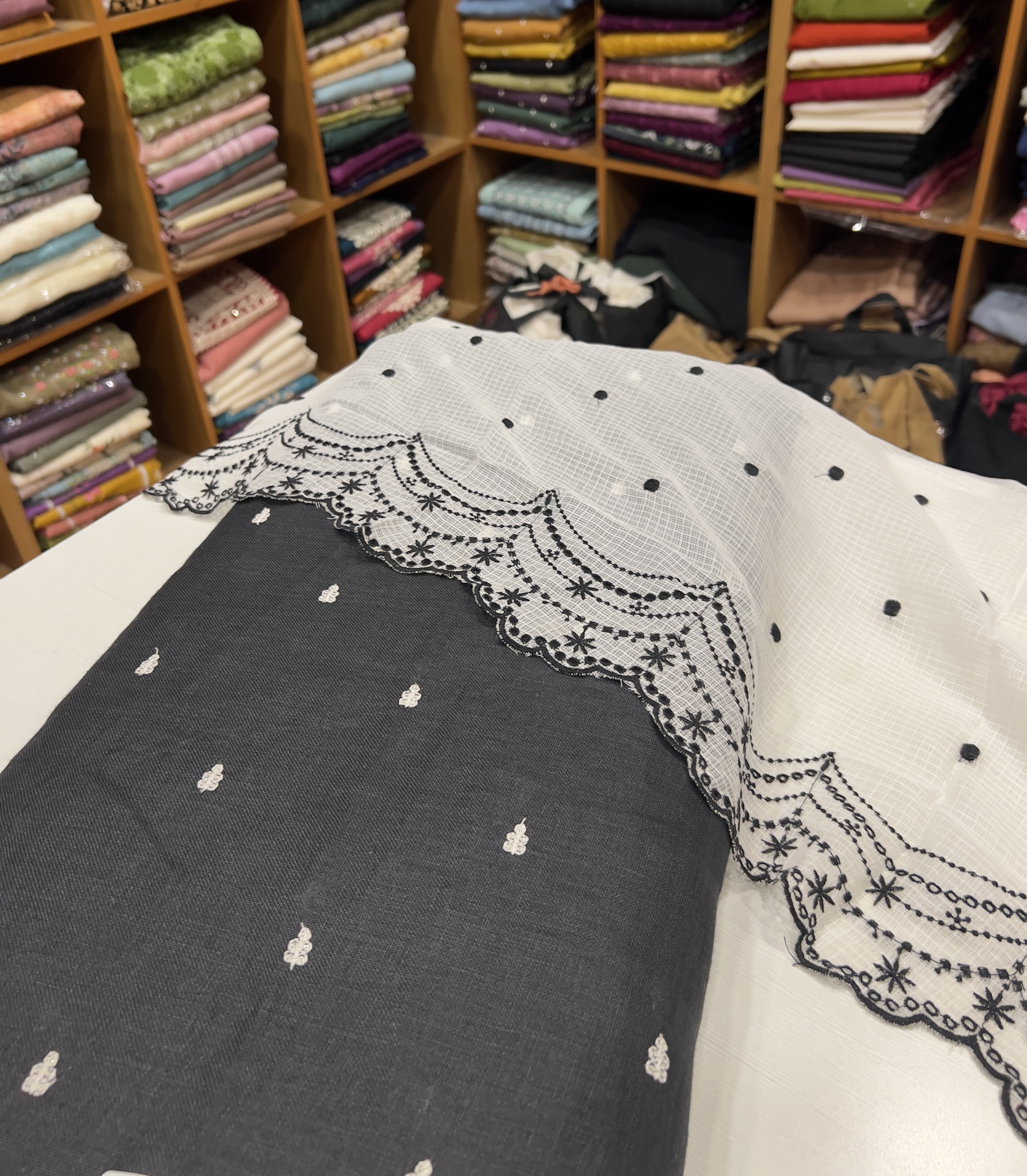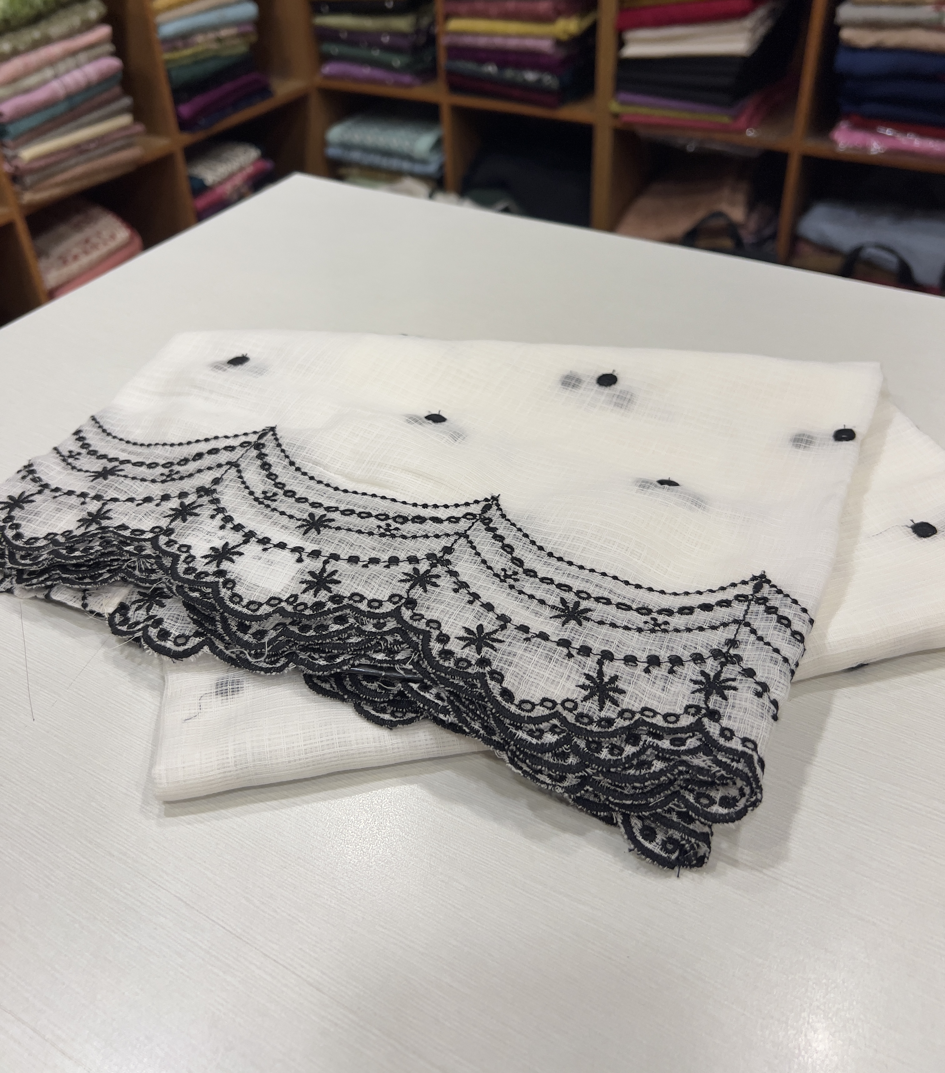 EST2 Embroidered Kotta Dupatta ( White & Black)