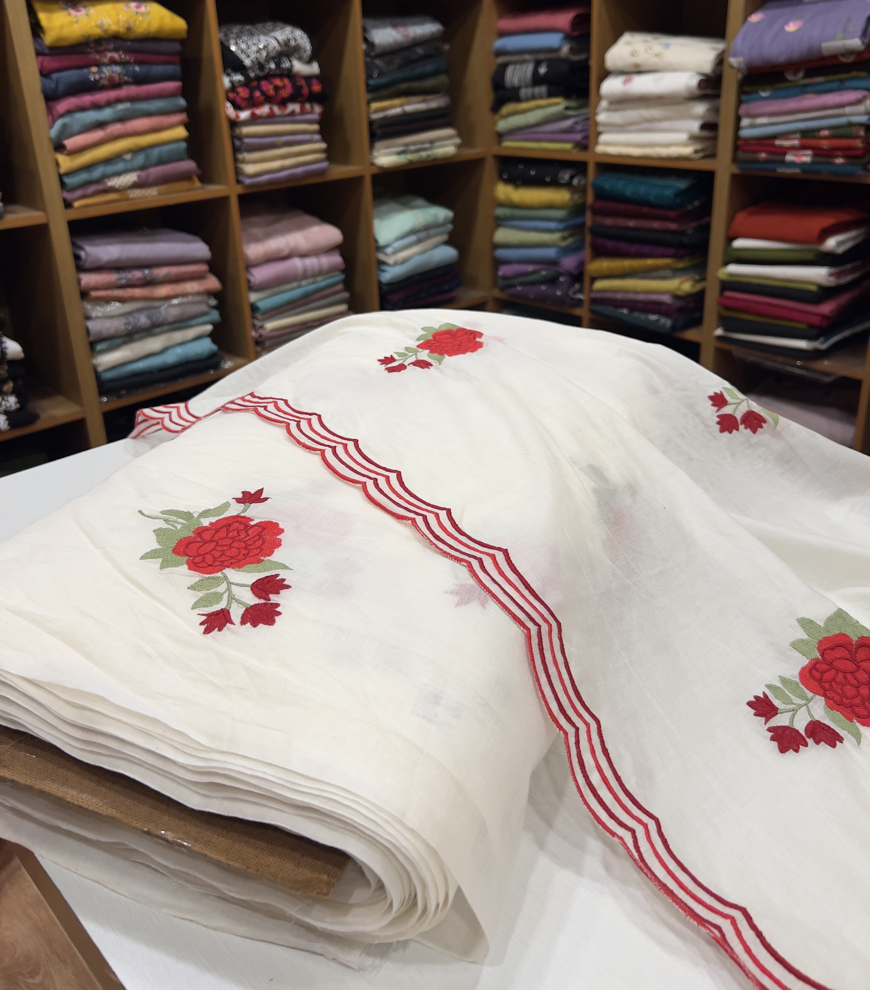 EST23 Embroidered Dupatta With Scallop Borders