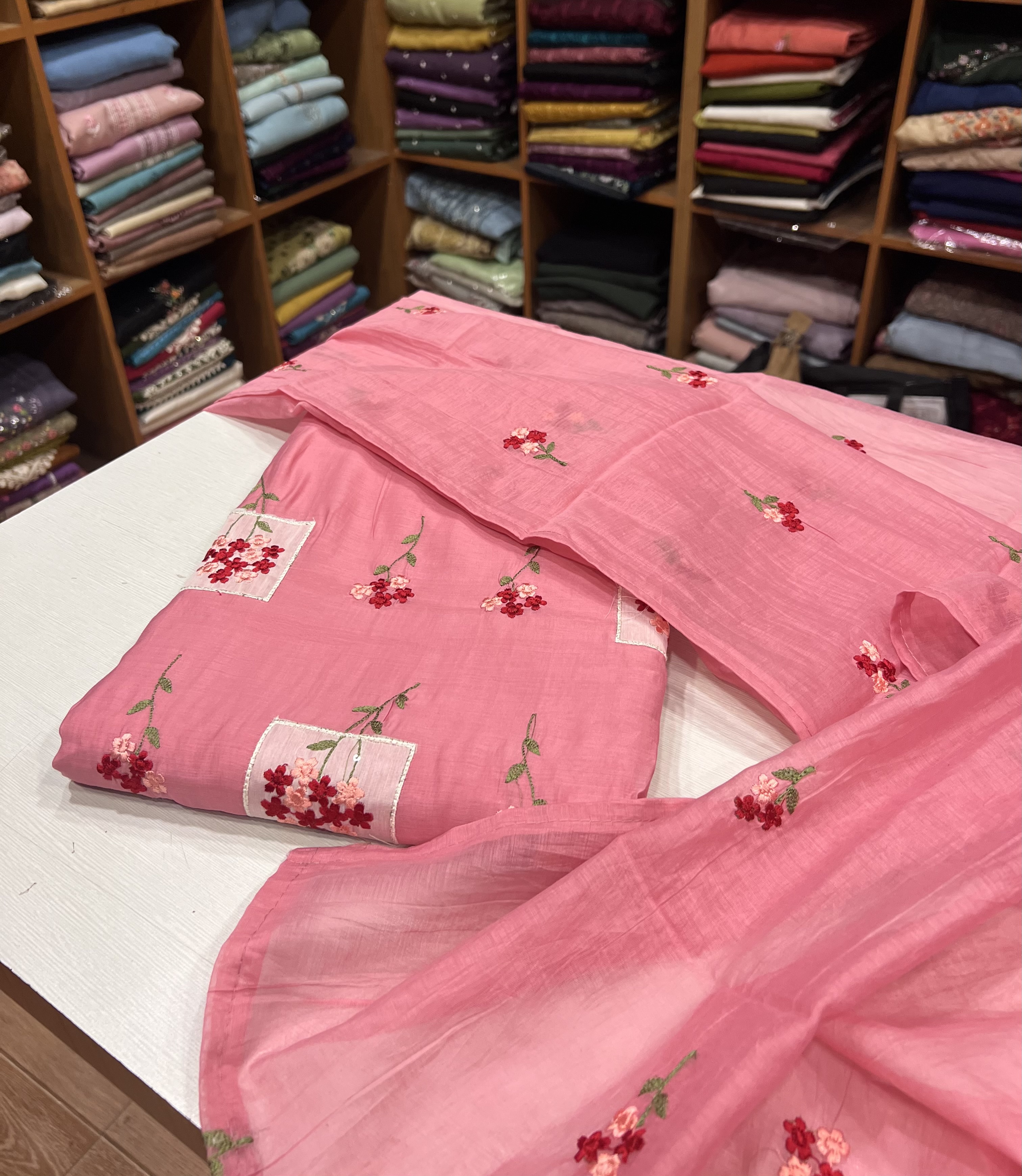 EST26 Semi Chanderi Patch Worked Top , Shantoon Bottom & Chanderi Dupatta - Copy 4