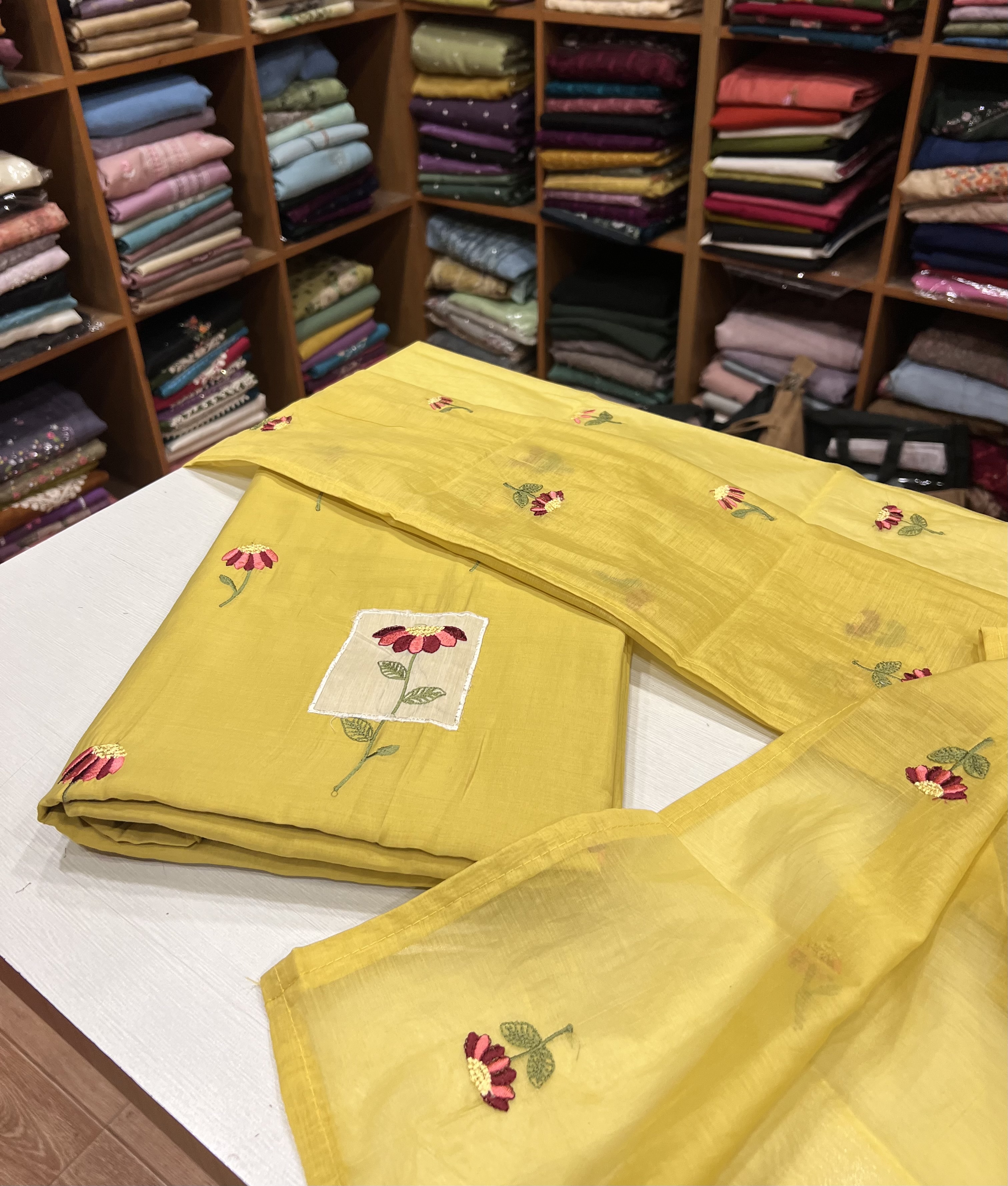 EST26 Semi Chanderi Patch Worked Top , Shantoon Bottom & Chanderi Dupatta - Copy 5