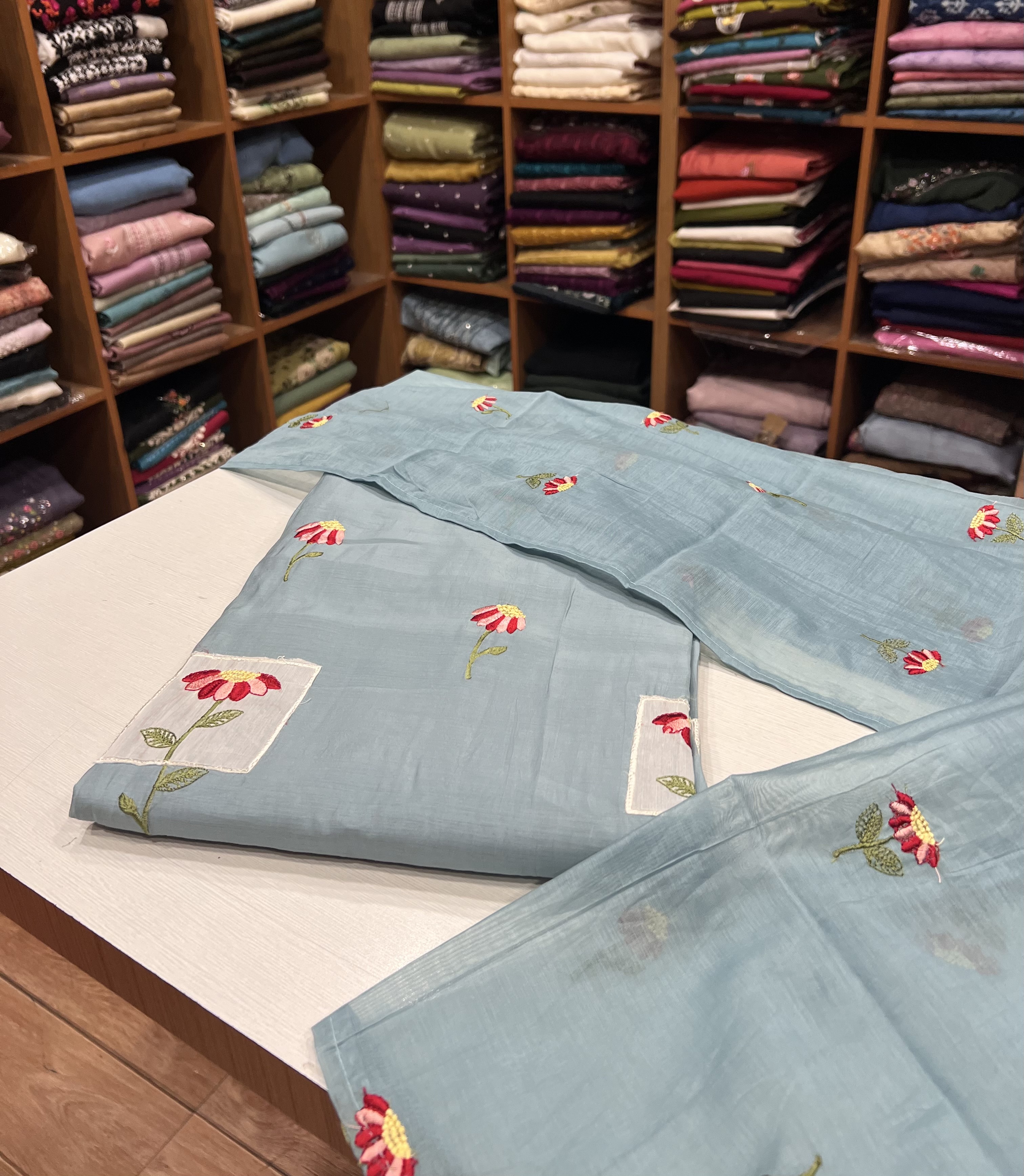 EST26 Semi Chanderi Patch Worked Top , Shantoon Bottom & Chanderi Dupatta - Copy 8