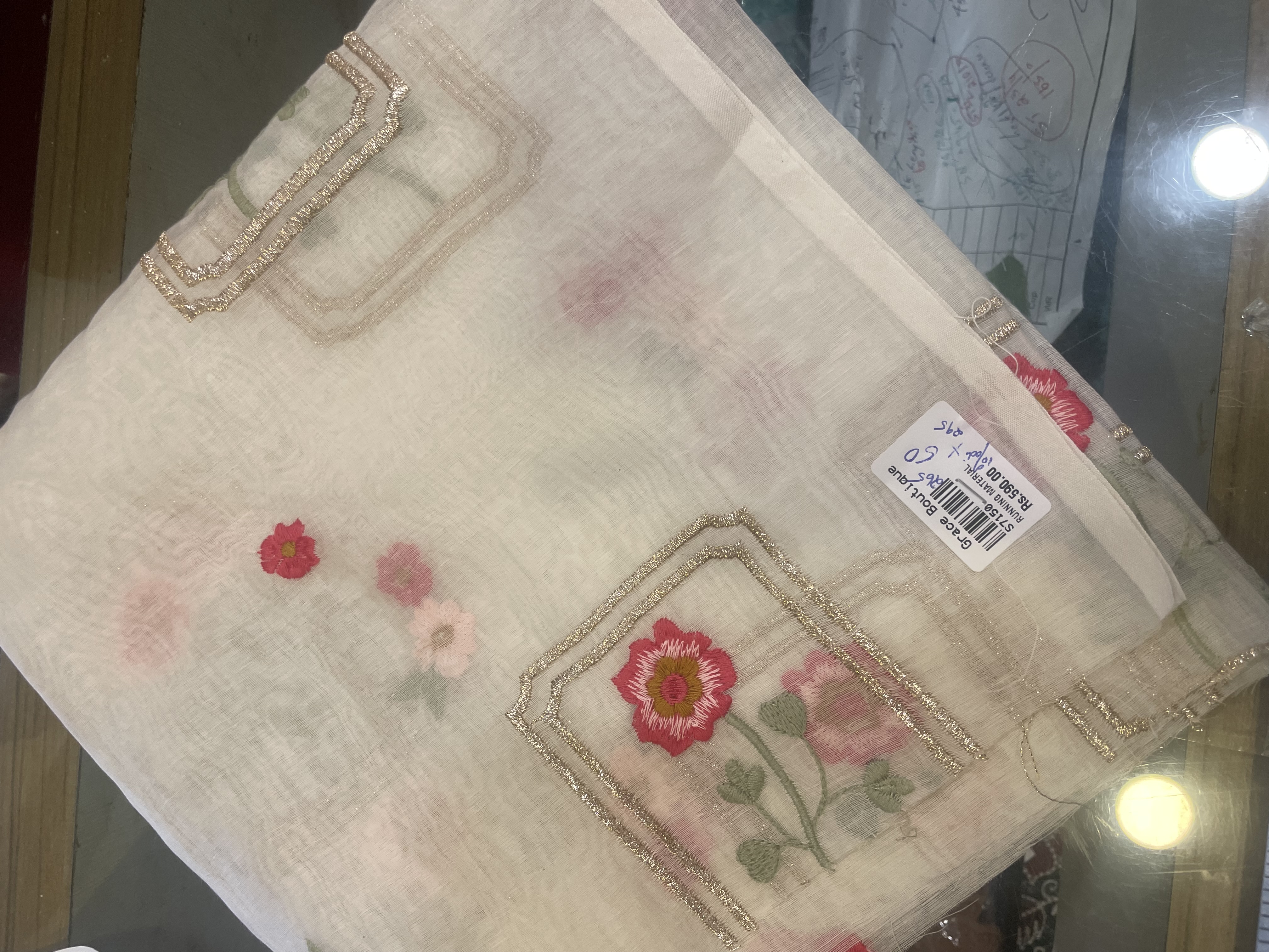 EST3 Embroidered Chanderi ( Offwhite)