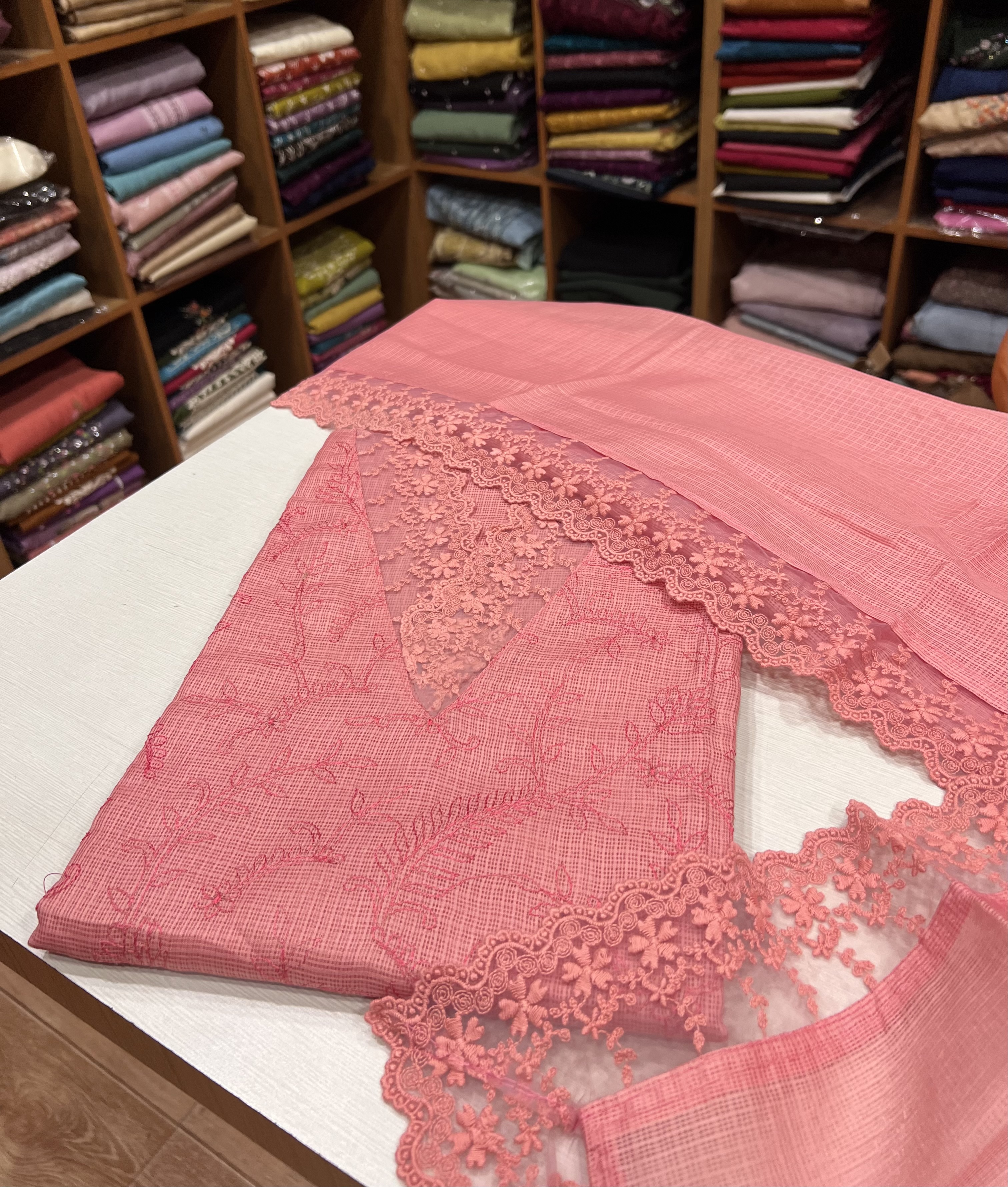EST34 Embroidered Kotta Top , Shantoon Bottom & Kotta Dupatta With Lace Borders - Copy 2