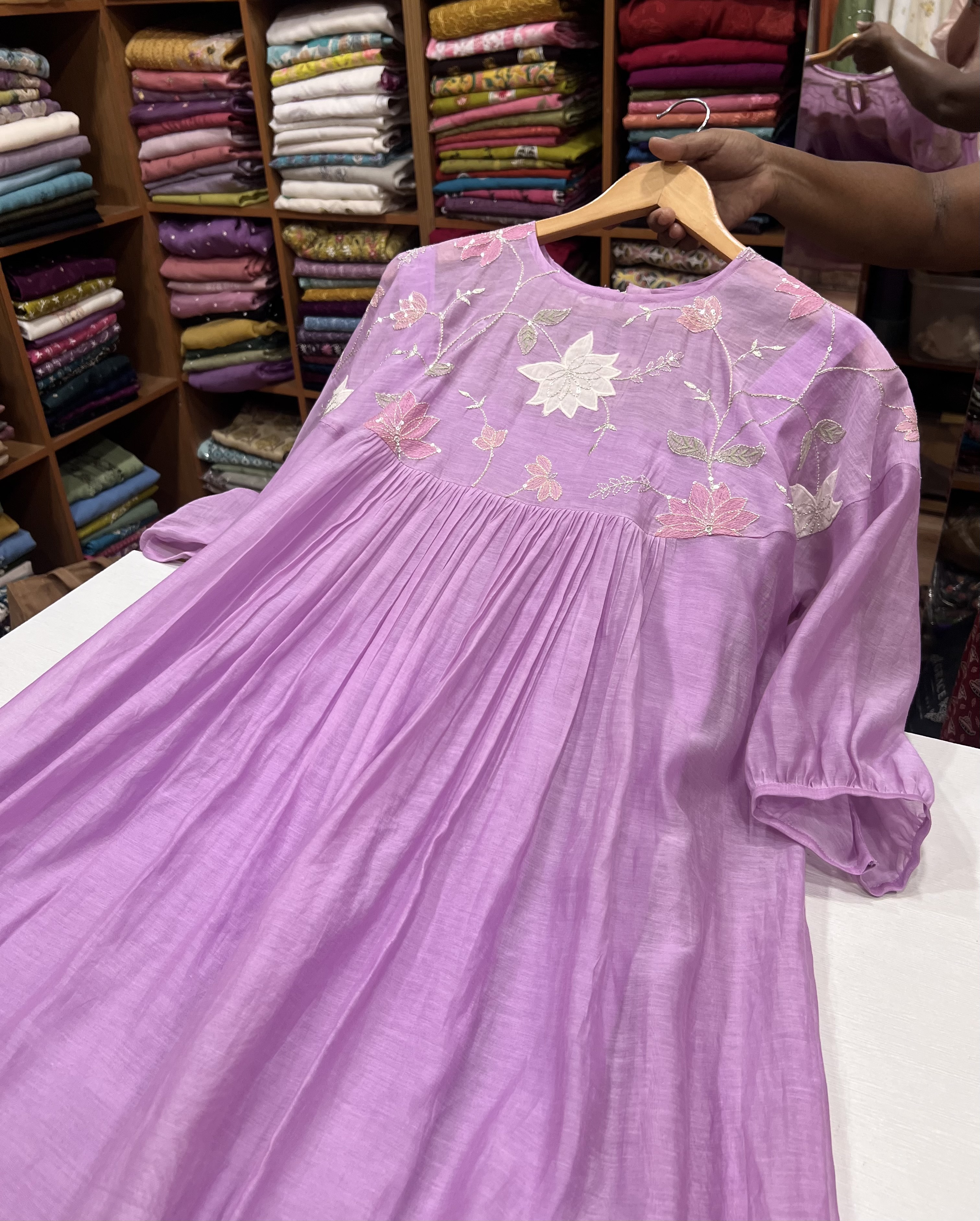 EST47 Embroidered Mul Chanderi & Plain Mul Chanderi Kurtha ( Bust Round 38) - Copy 1