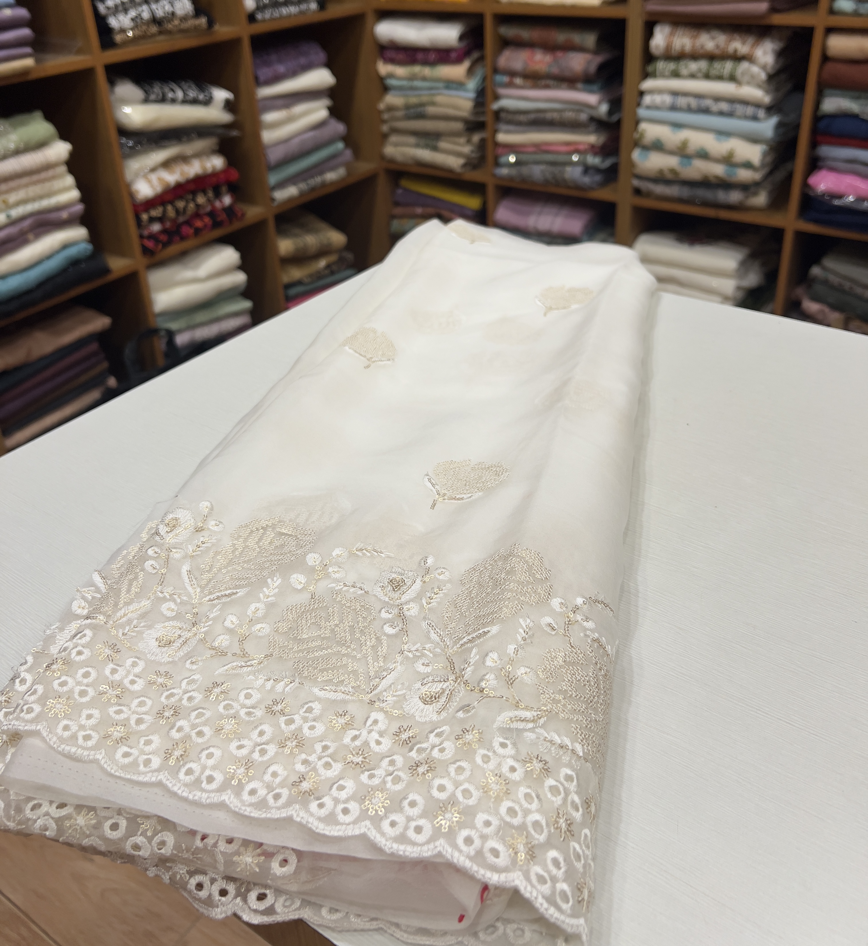 FAB346 Embroidered Dyeable Organza ( 3.50 Mtrs)