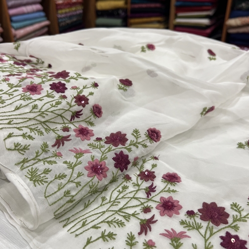 EST31 Embroidered Mul Chanderi ( 44 Inches Width)