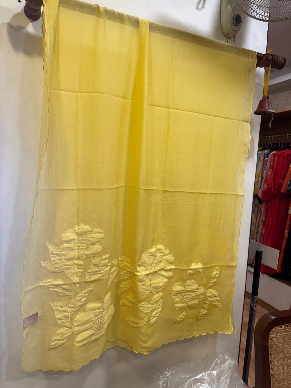 FBCA1 BANARASI CHANDERI APPLIQUE DUPATTA (yellow)