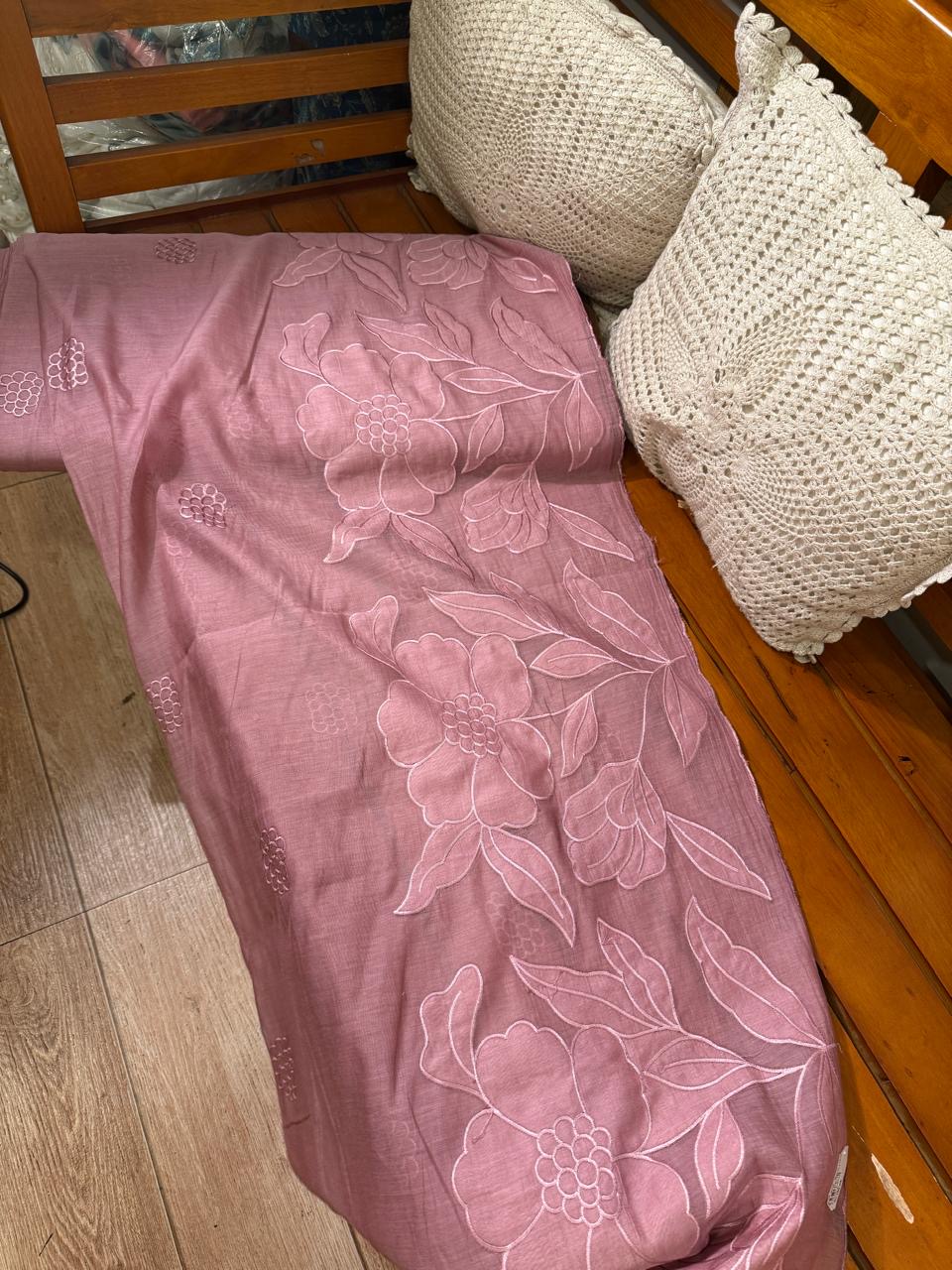 FBCA1 BANARASI CHANDERI APPLIQUE WORK (onion Pink)