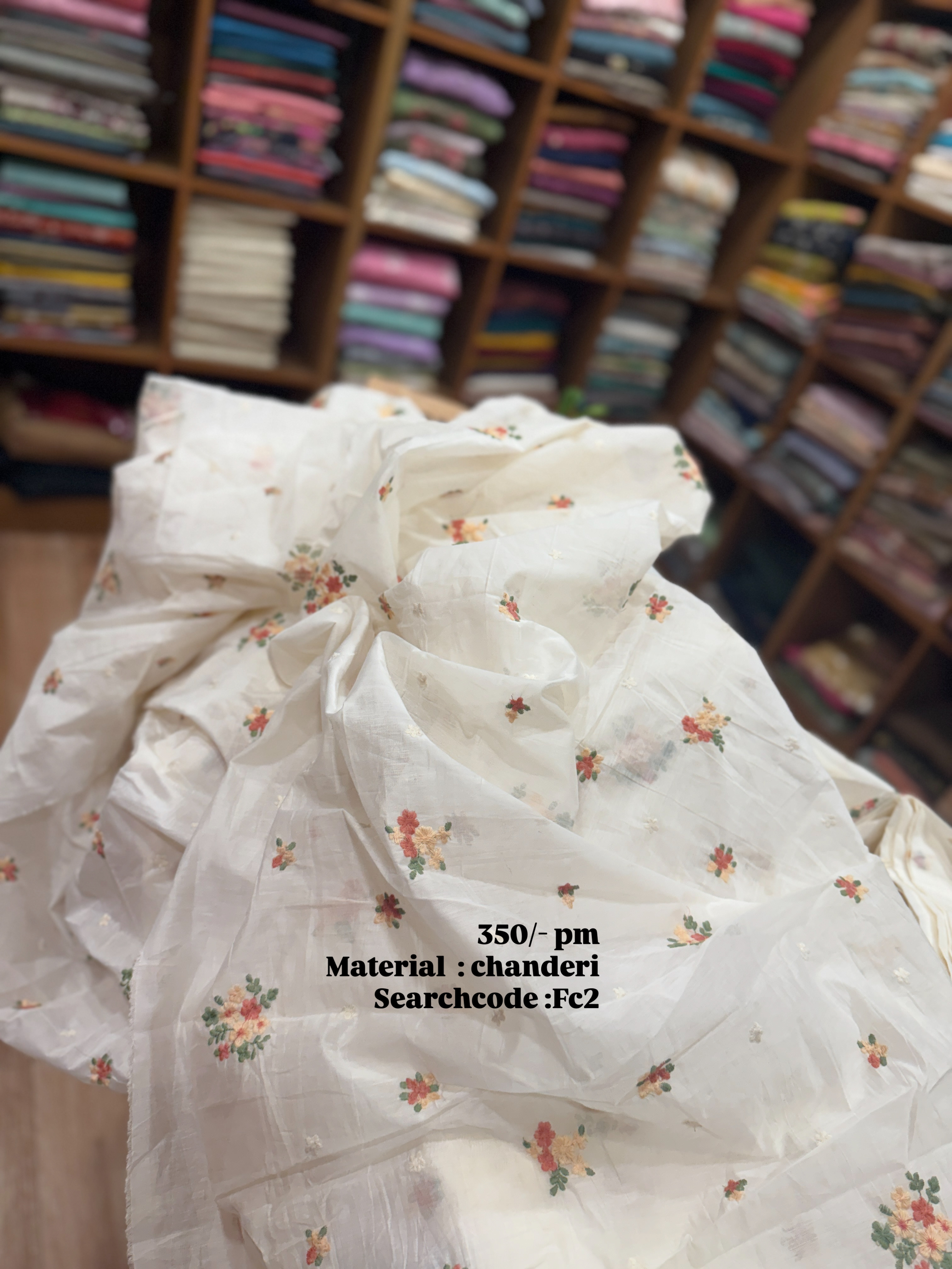FC2-chanderi Fabric With Peach Floral Embroidery