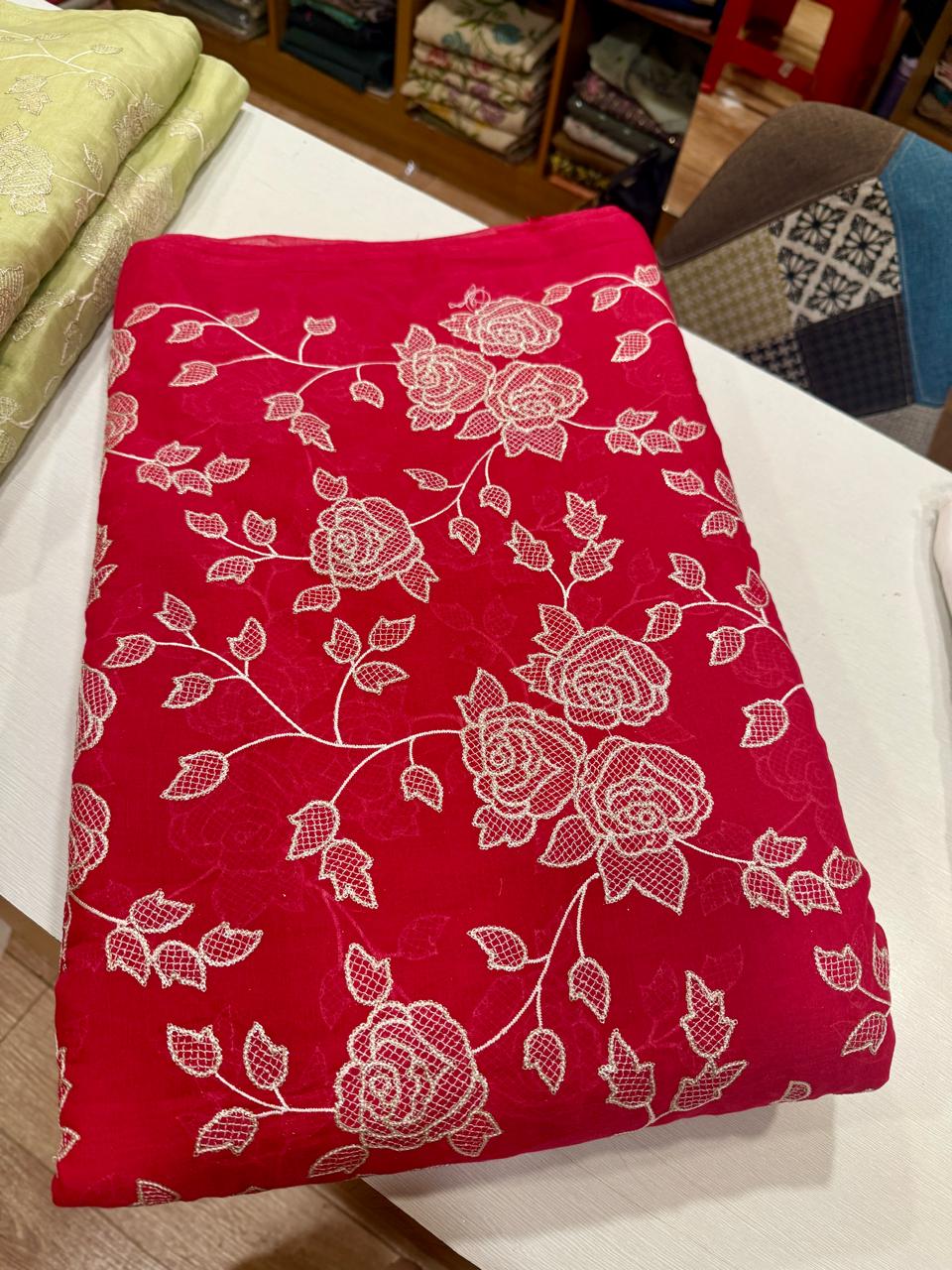 FECH2 - Floral Embroidered Mul Chanderi (RED)