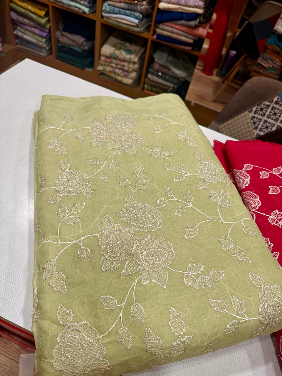 FECH2 - Floral Embroidered Mul Chanderi (PASTEL GREEN)