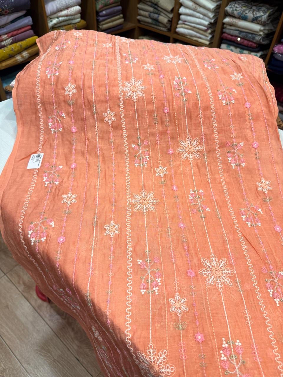 FEMC2 - Embroidered Mul Chanderi (Top Fabric) Terracotta Peach