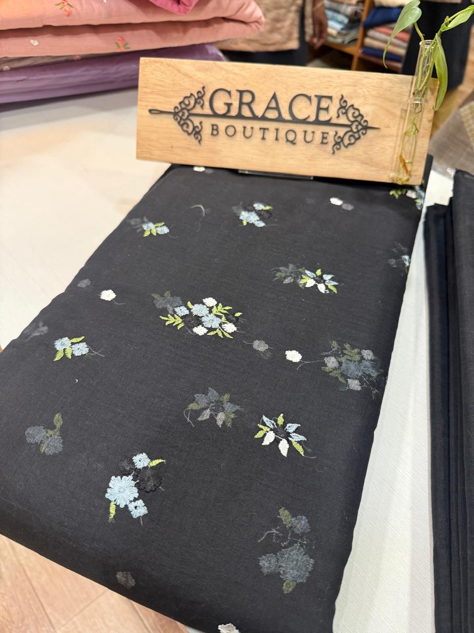FEMC3 - Mul Chanderi Embroidered (Black)