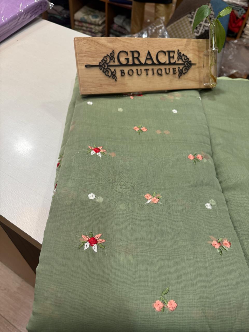 FEMC3 - Mul Chanderi Embroidered (Sage Green)