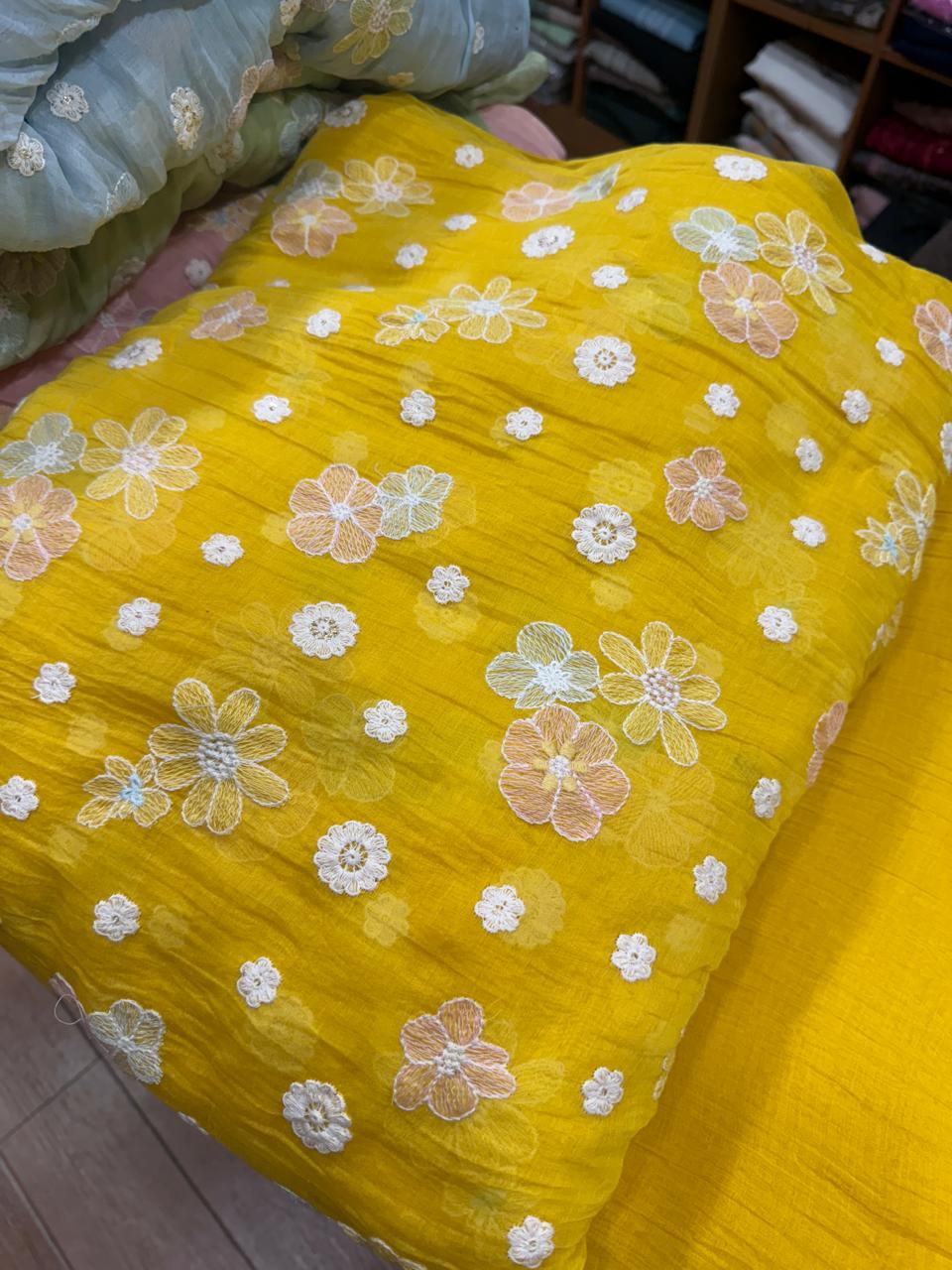 FPMC Embroidered Mul Chanderi (Mango Yellow)