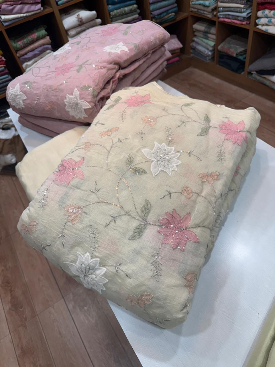 CUT4 - Mul Chanderi Embroidered (pastel Yellow) Last Piece 1.20 Mtr