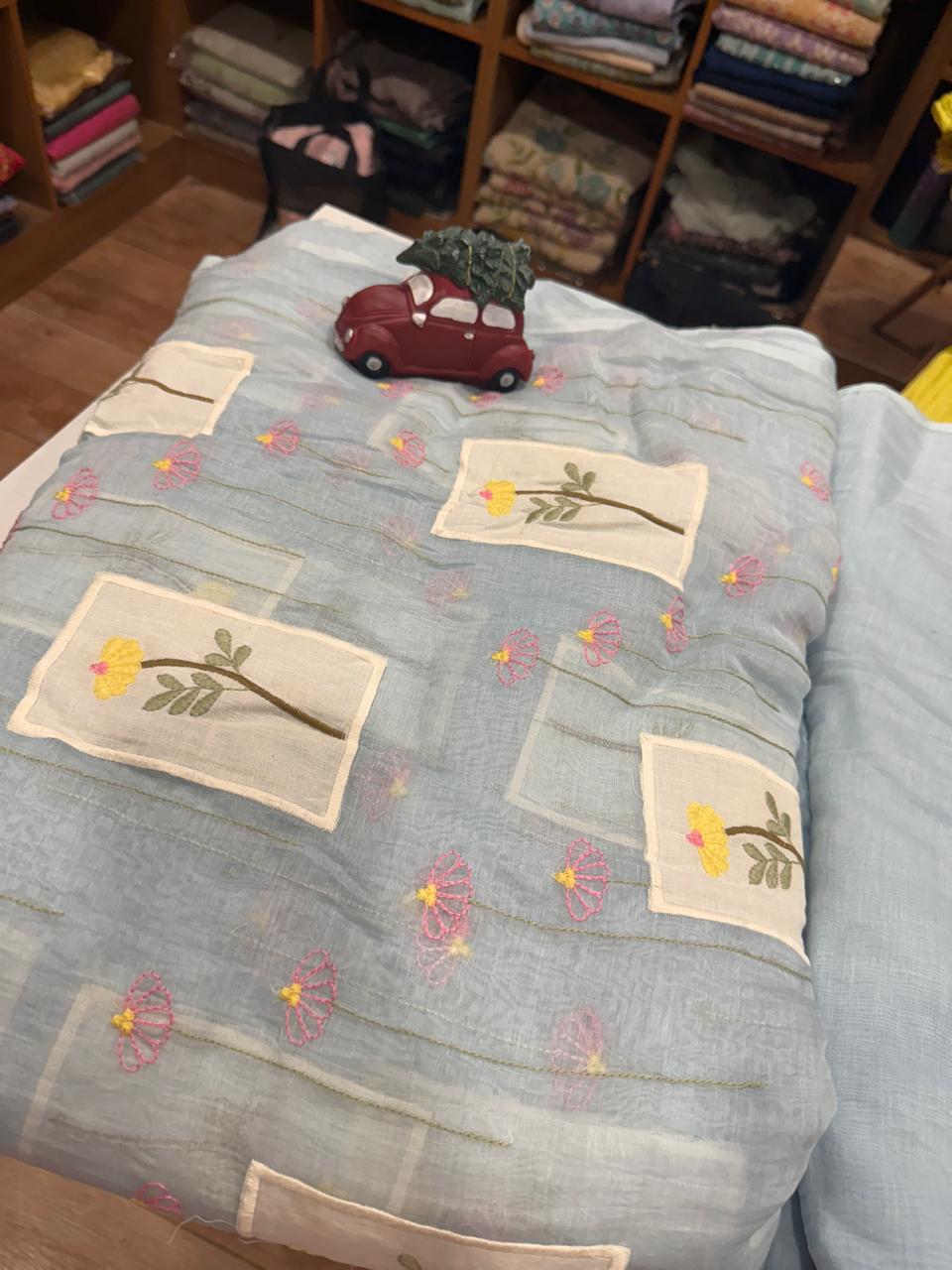 FPMC1 - Mul Chanderi Floral Patch Last Piece 1.40 Mtr