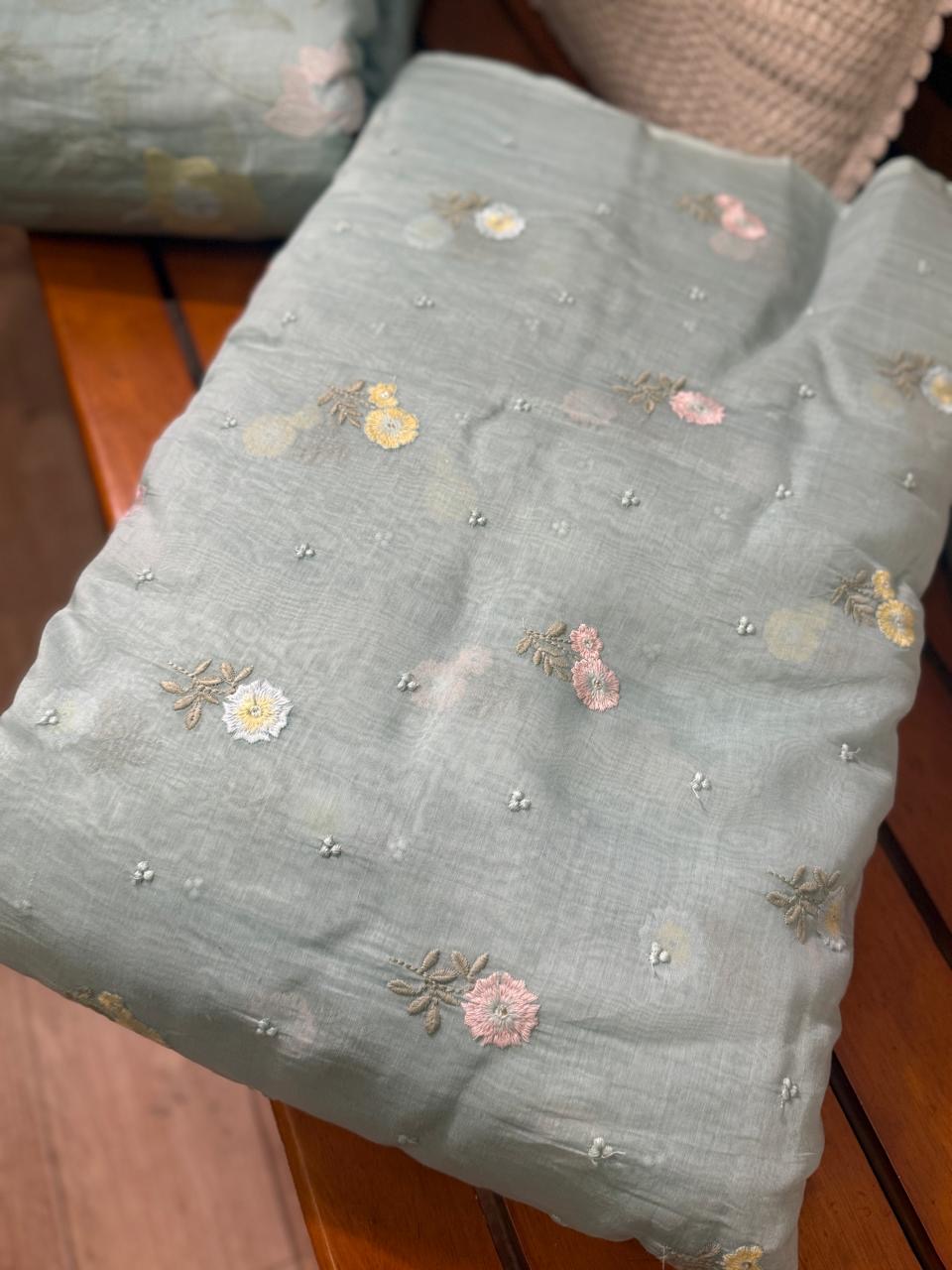 FPMC6 - Mul Chanderi Embroidered (light Green)