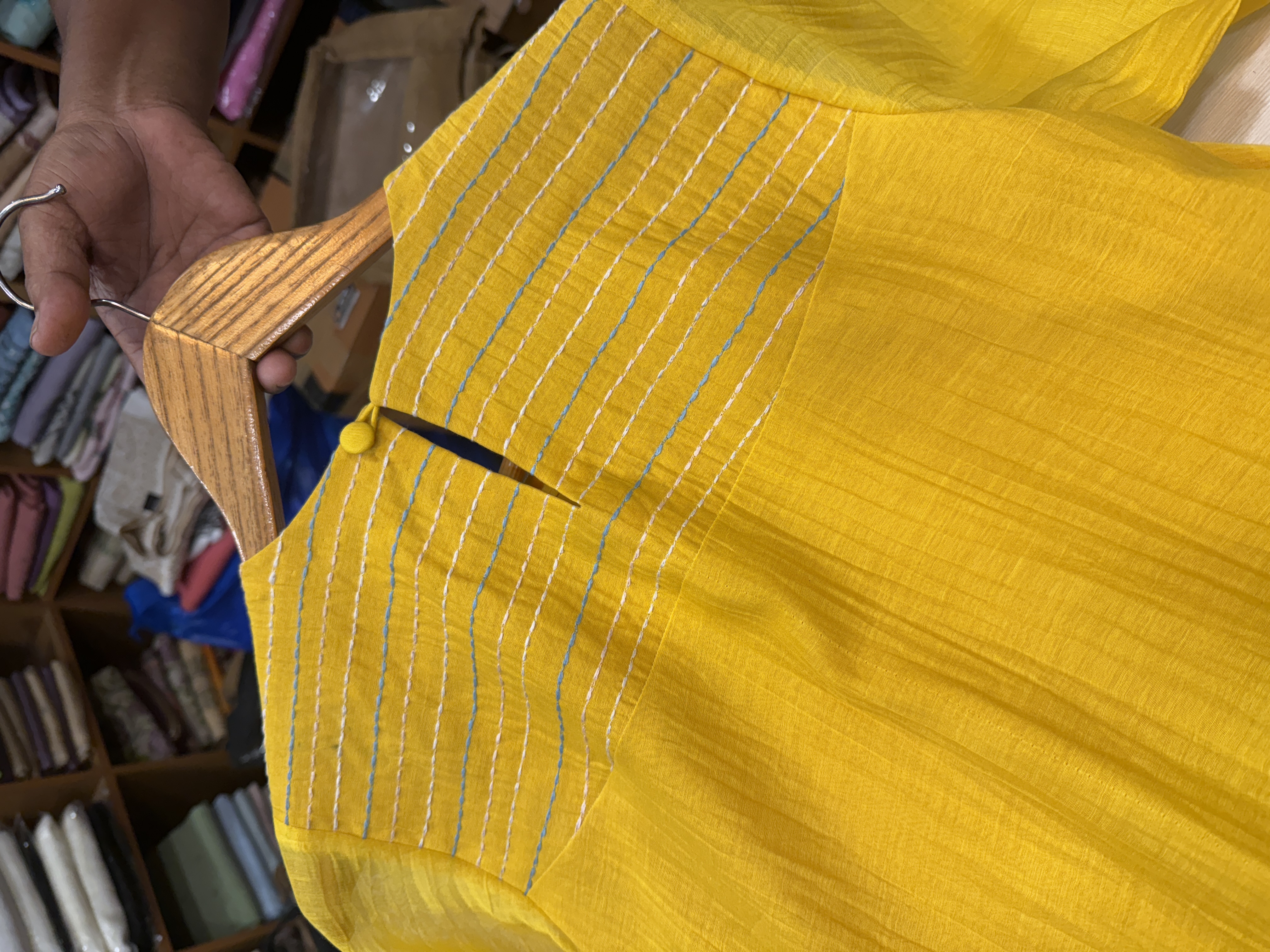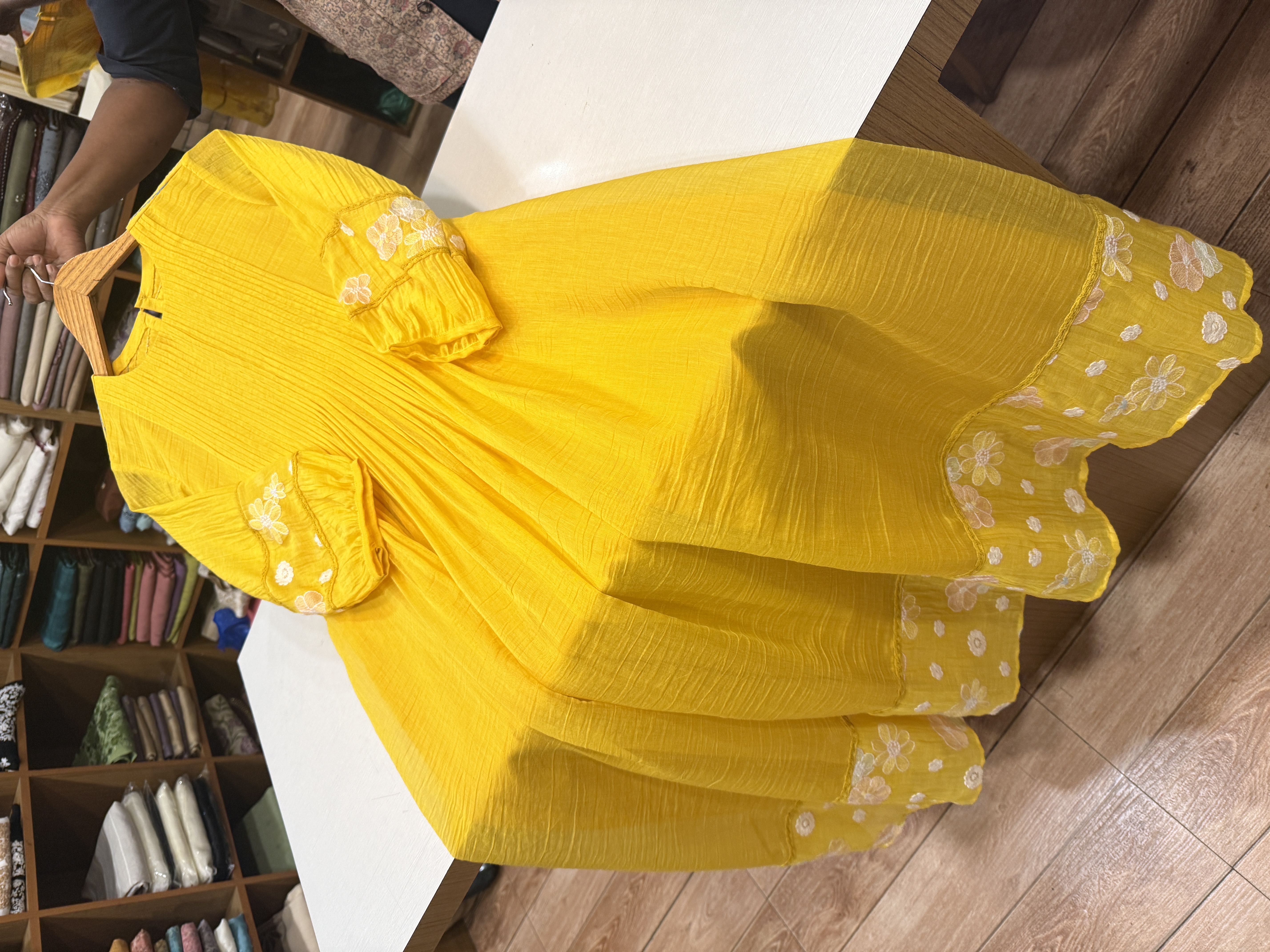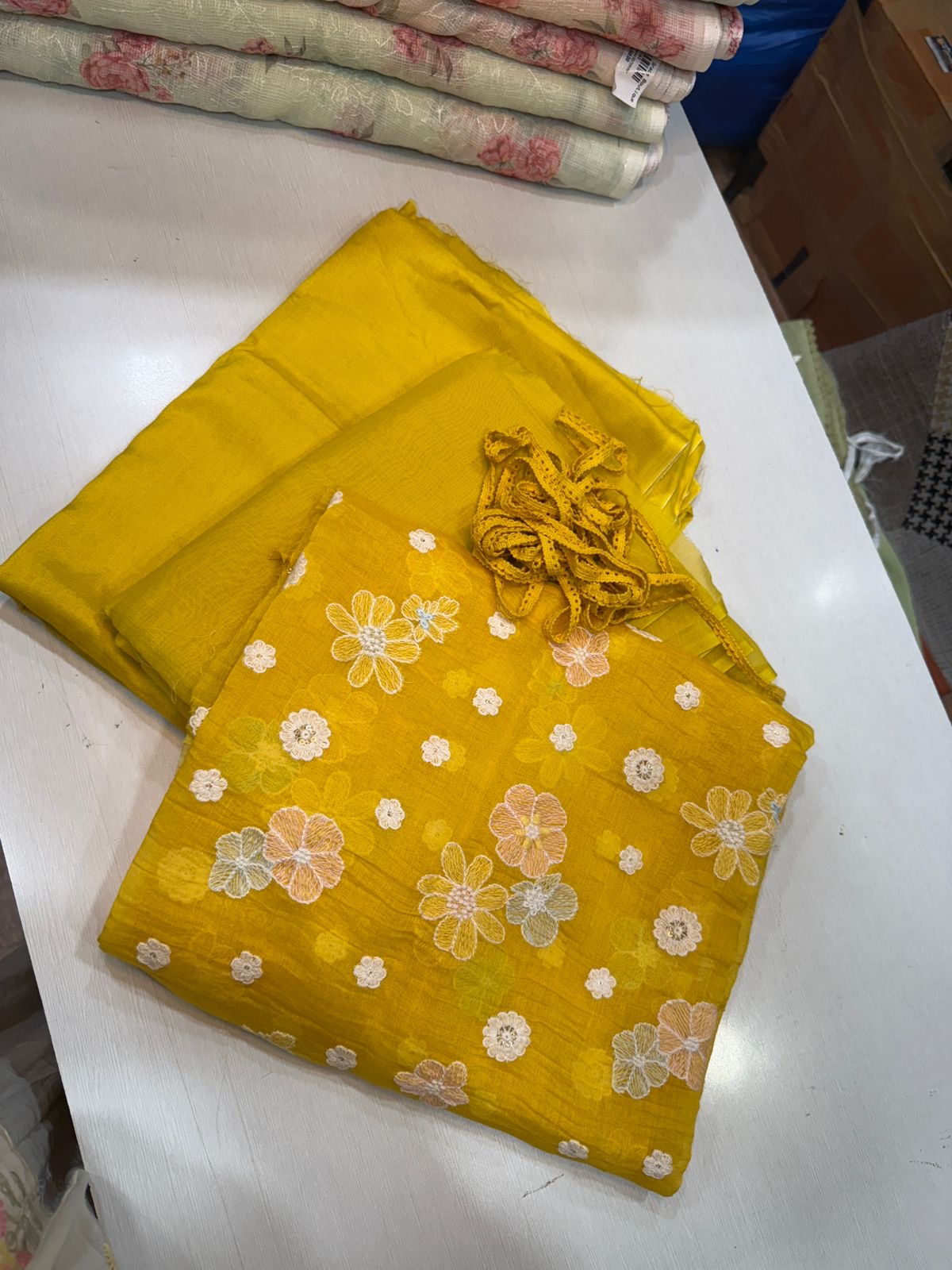 KT2 Unstitched Mul Chanderi Kurthi Set (yellow)