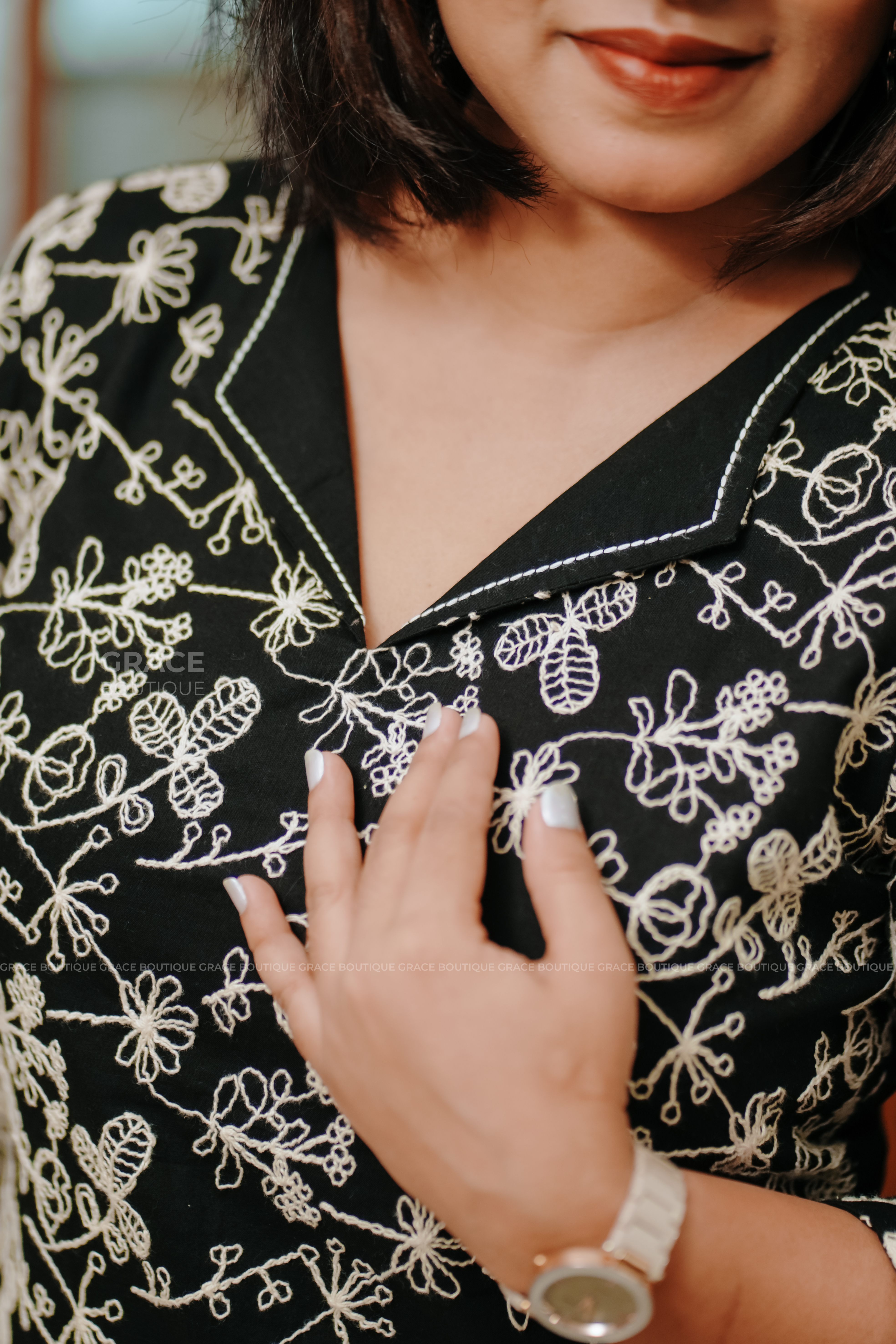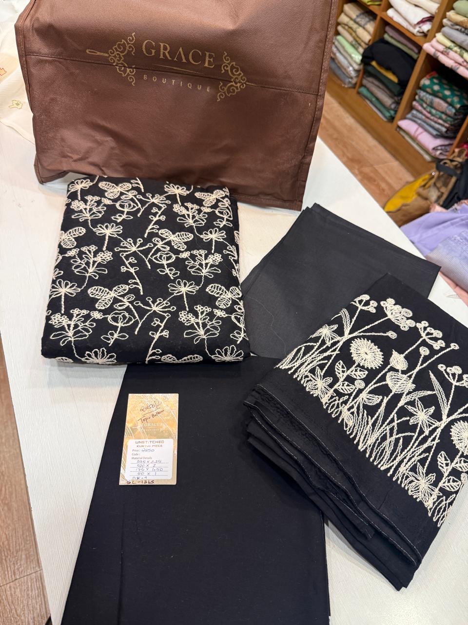 KT2 Unstitched Embroidered Cotton Material ( Black)