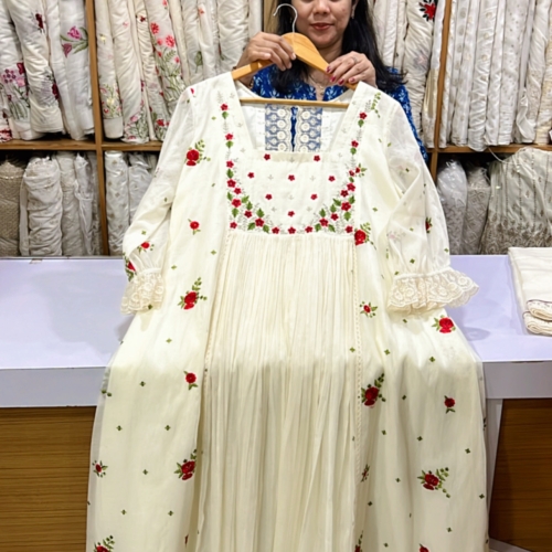 Embroidered Cotton Aline Dress