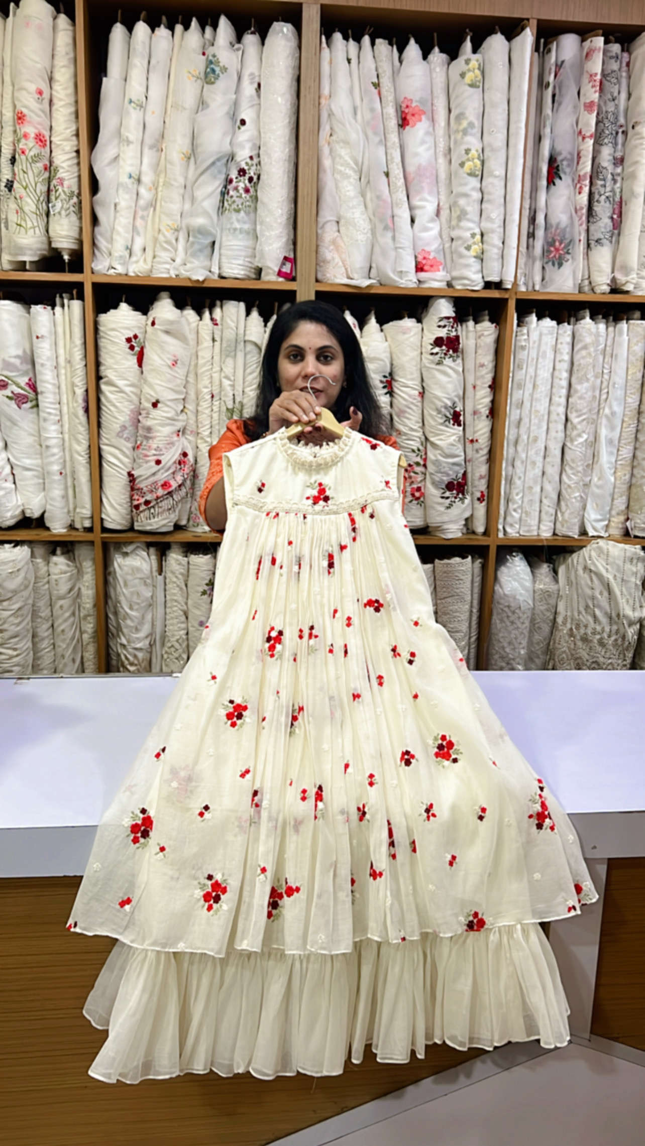 Embroidered Chanderi Christmas Frock