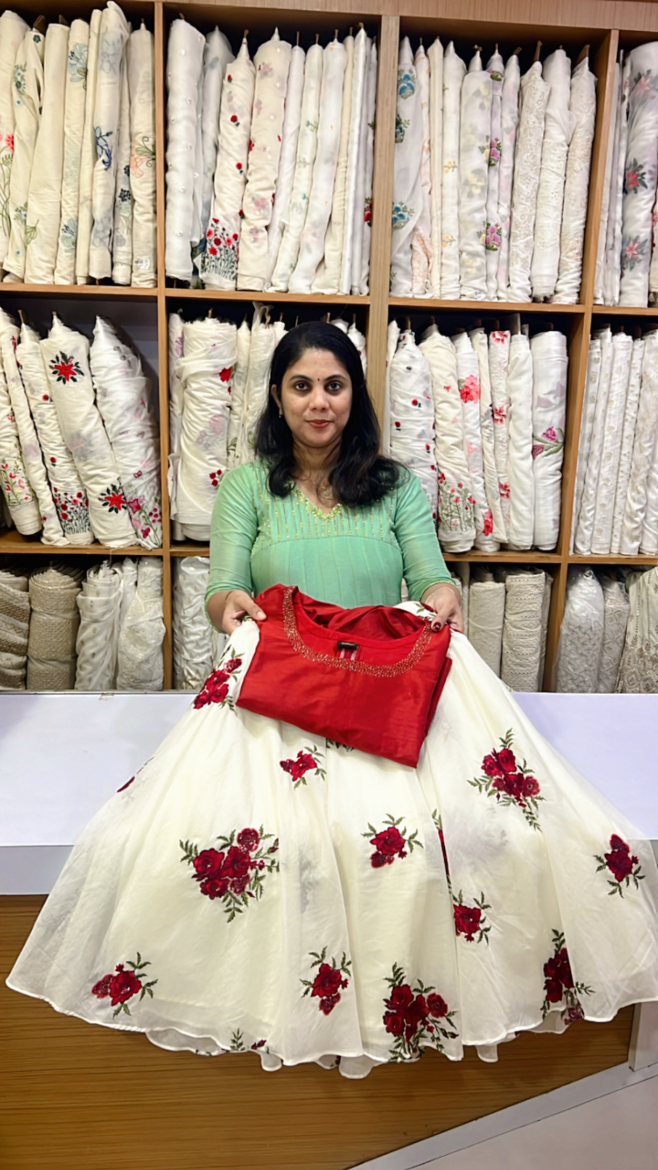 Embroidered Chanderi Skirt & Semi silk top