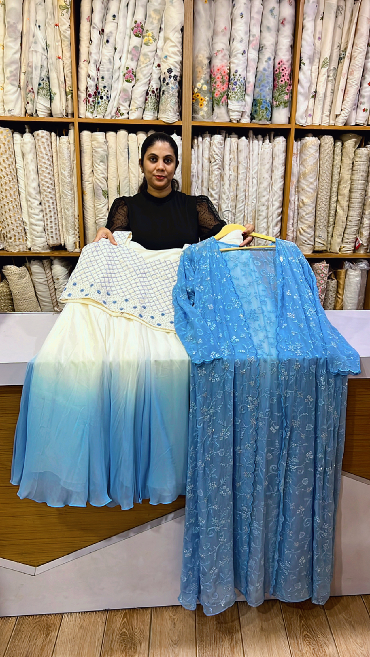 Georgette skirt & top with embroidered organza jacket