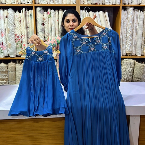 Georgette handworked Mom & Daughter Outfits