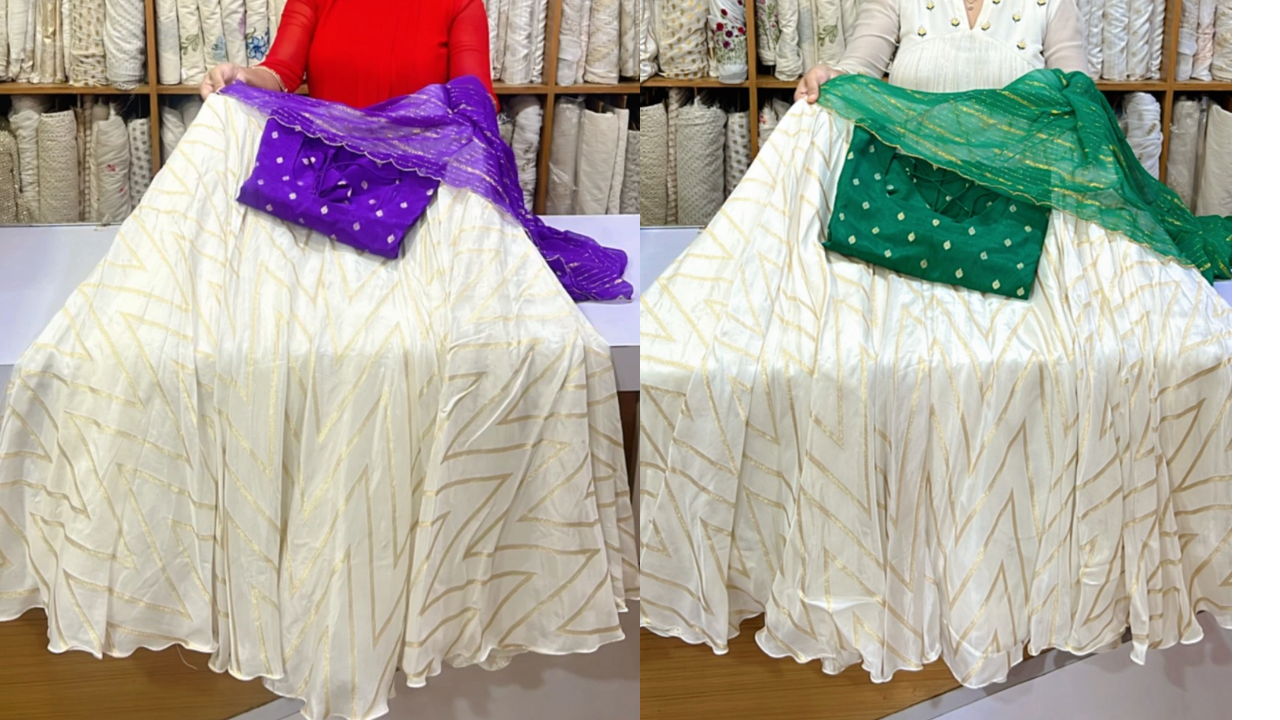 Zig zag unbrella skirt , crepe silk top & Lurex Georgette dupatta
