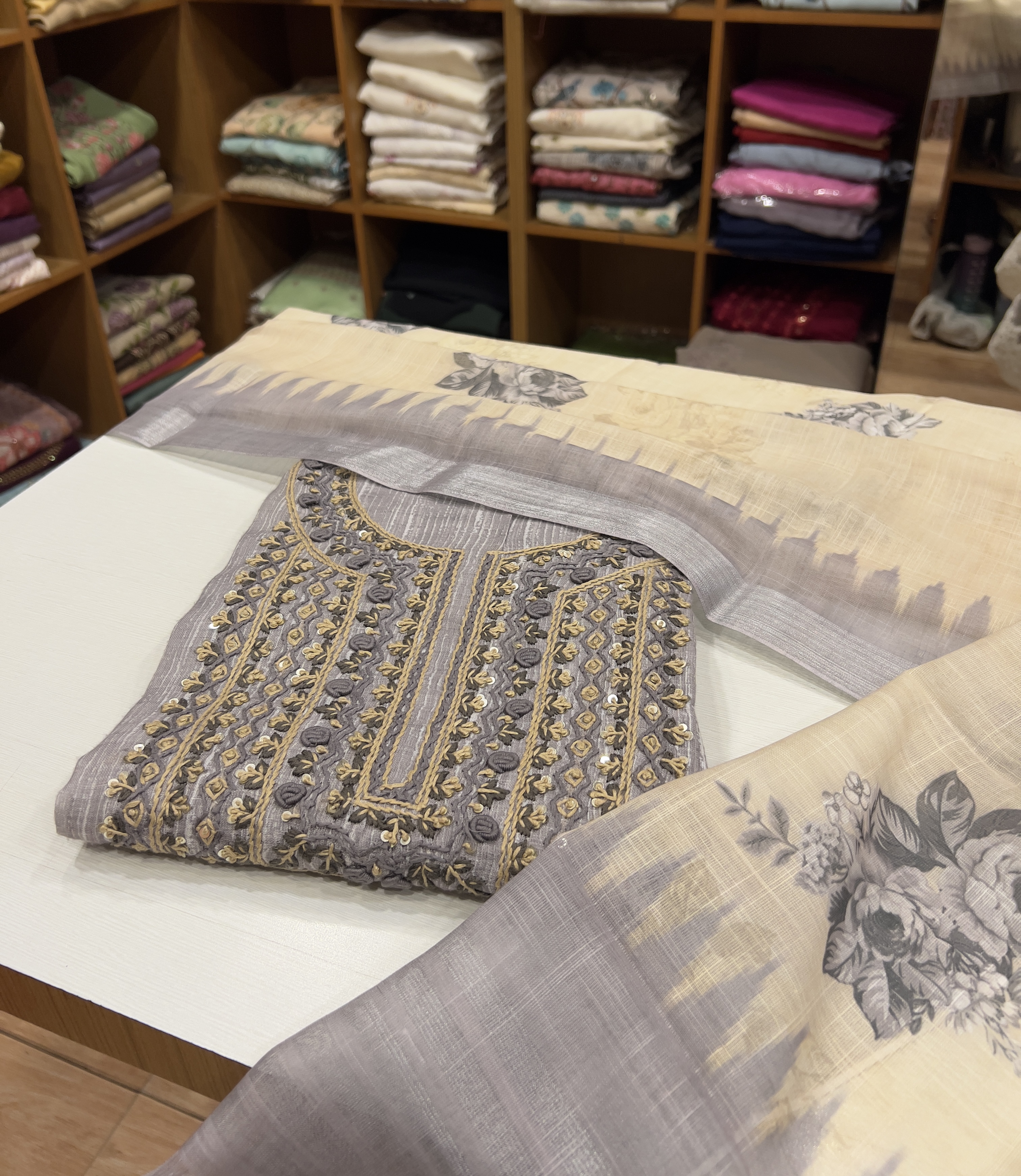 Sale10 Linen Top , Shantoon Bottom &Silk & Semi Linen Dupatta