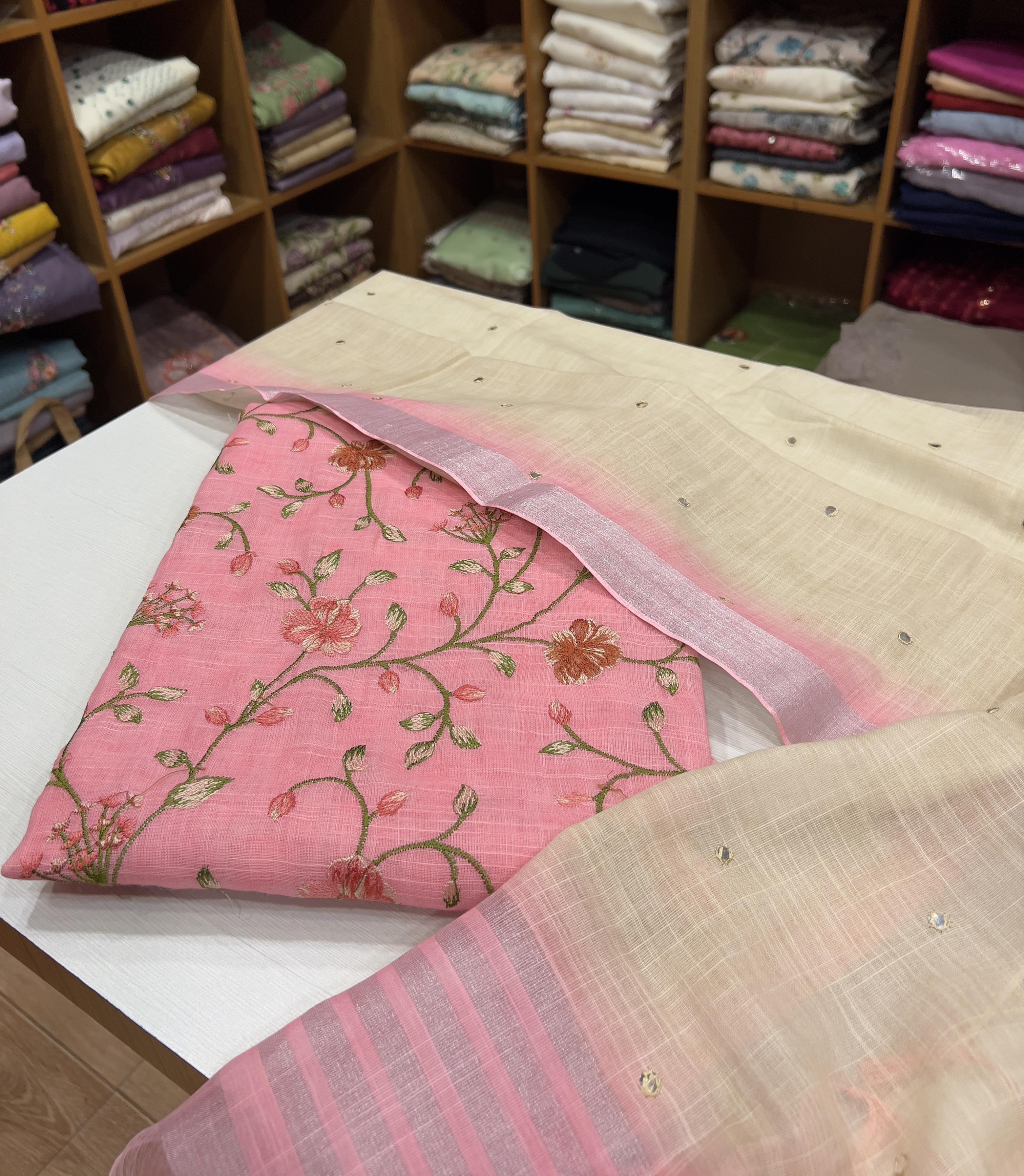 Sale10 Linen Top , Shantoon Bottom &Silk & Semi Linen Dupatta - Copy
