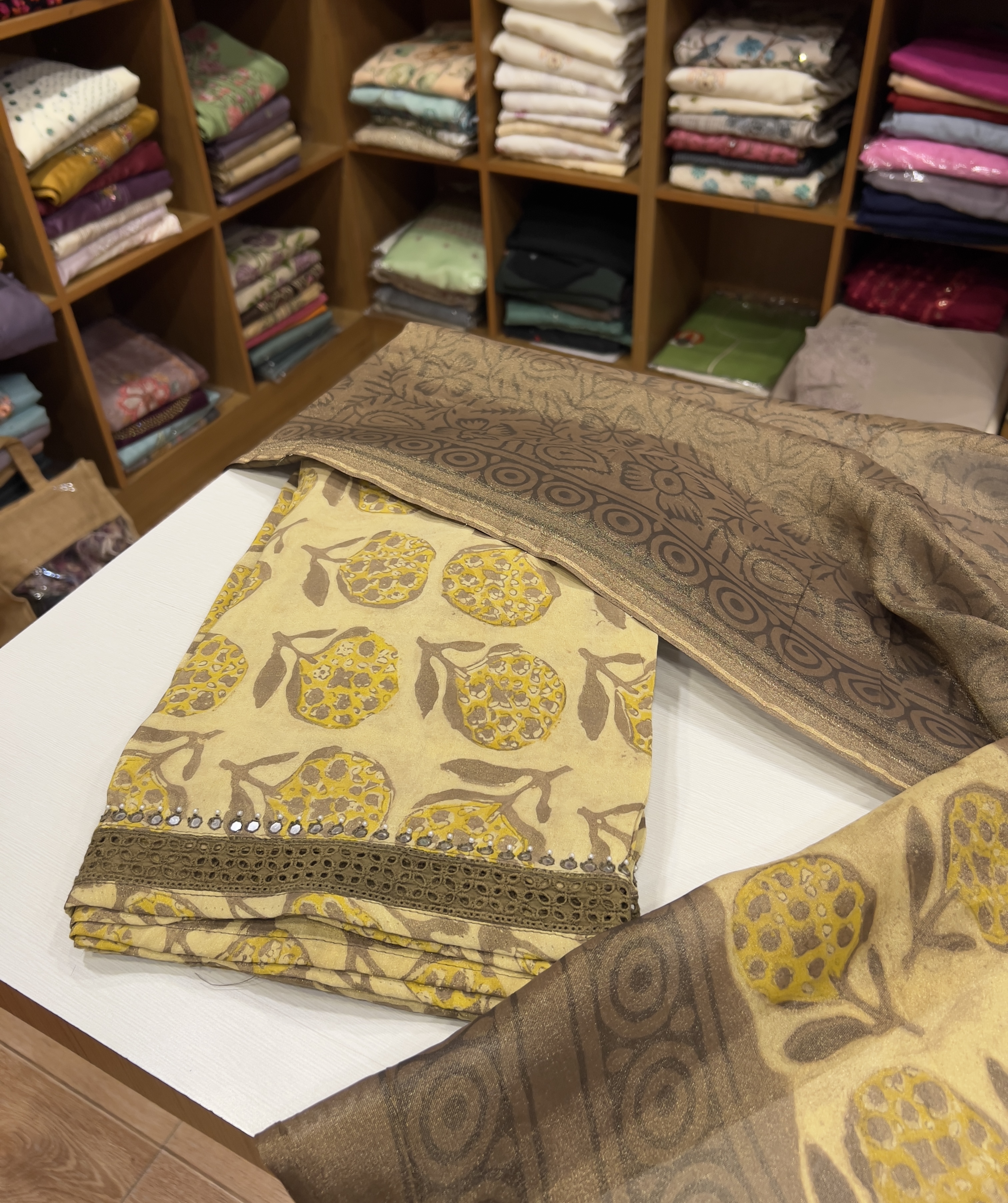Sale10 Tissue Silk Top , Cotton Bottom & Tissue Silk Dupatta