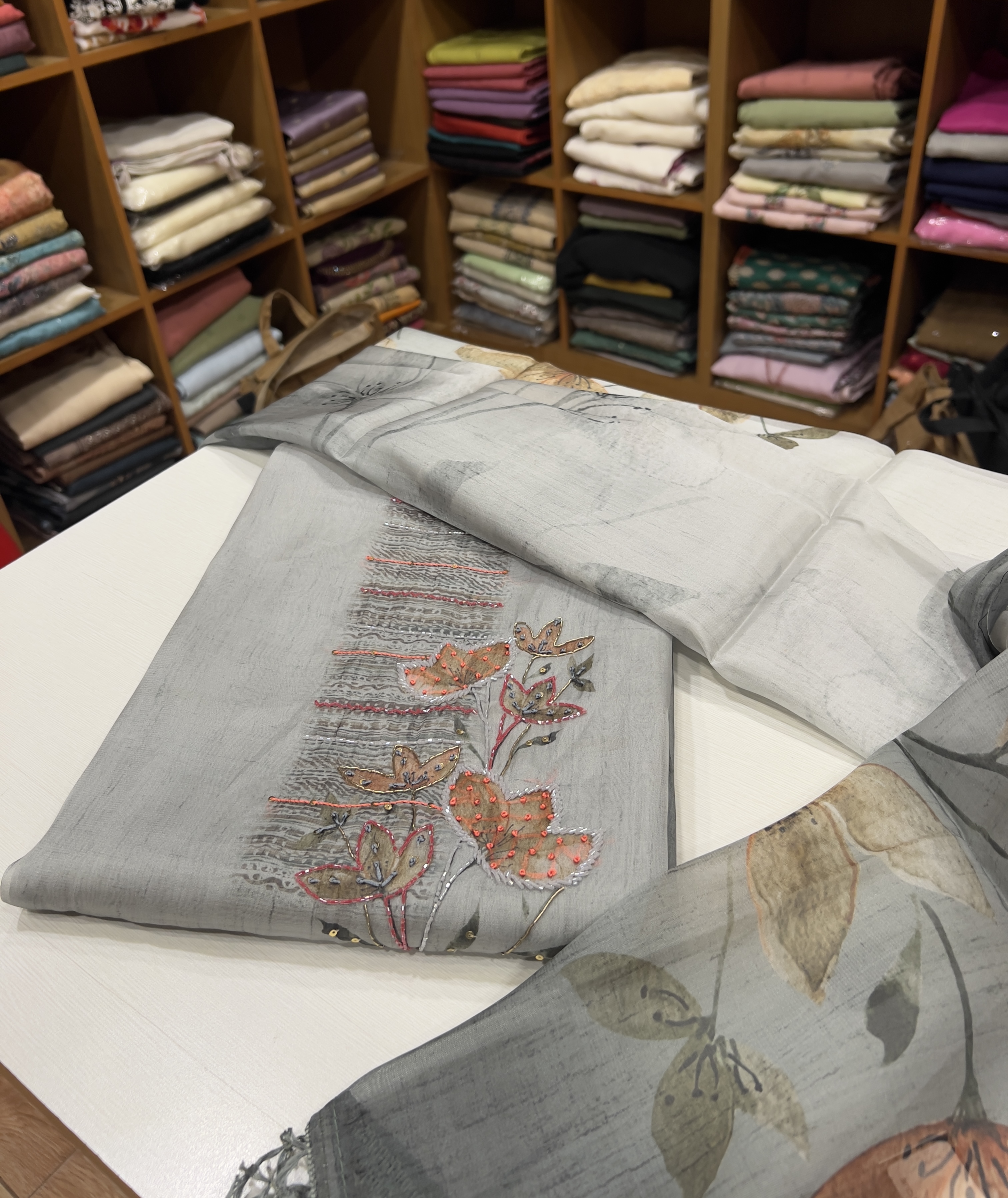 Sale23 Organza Top , Shantoon Bottom & Organza Dupatta