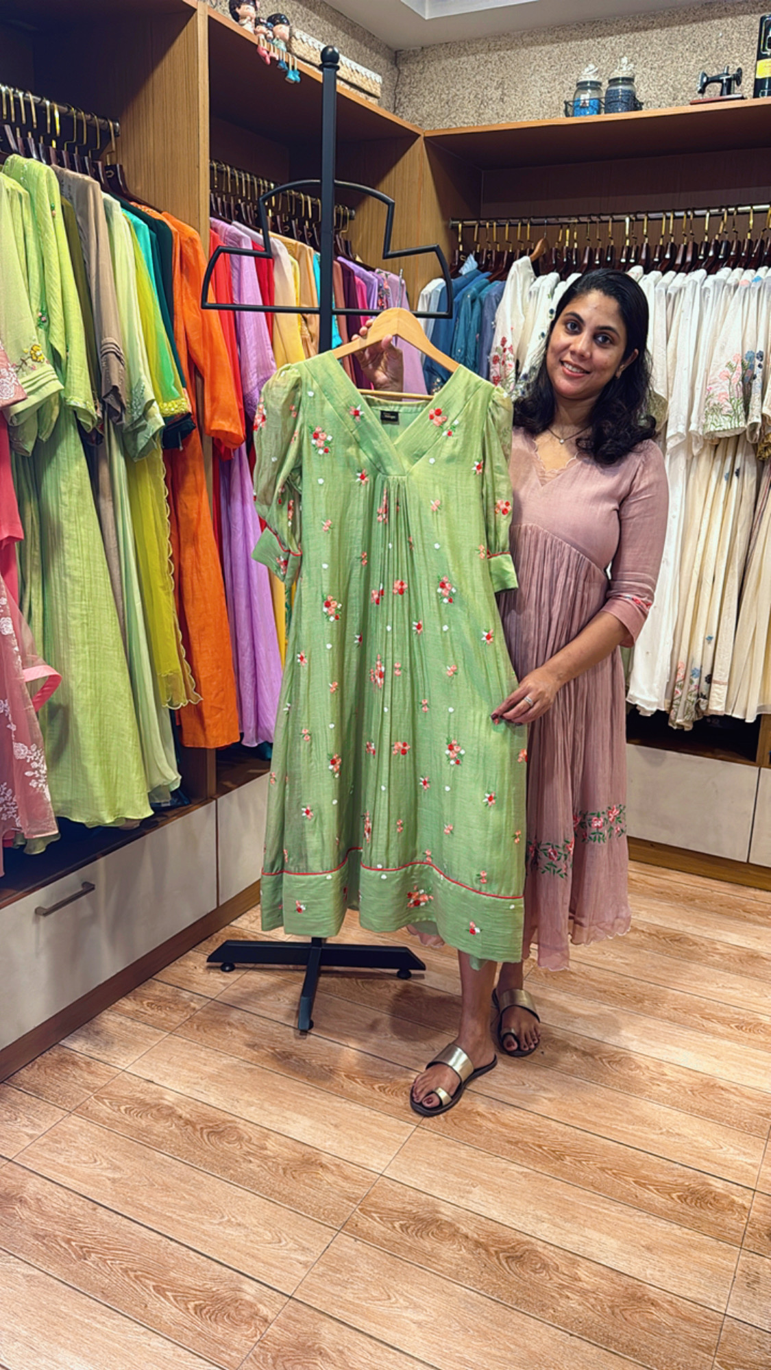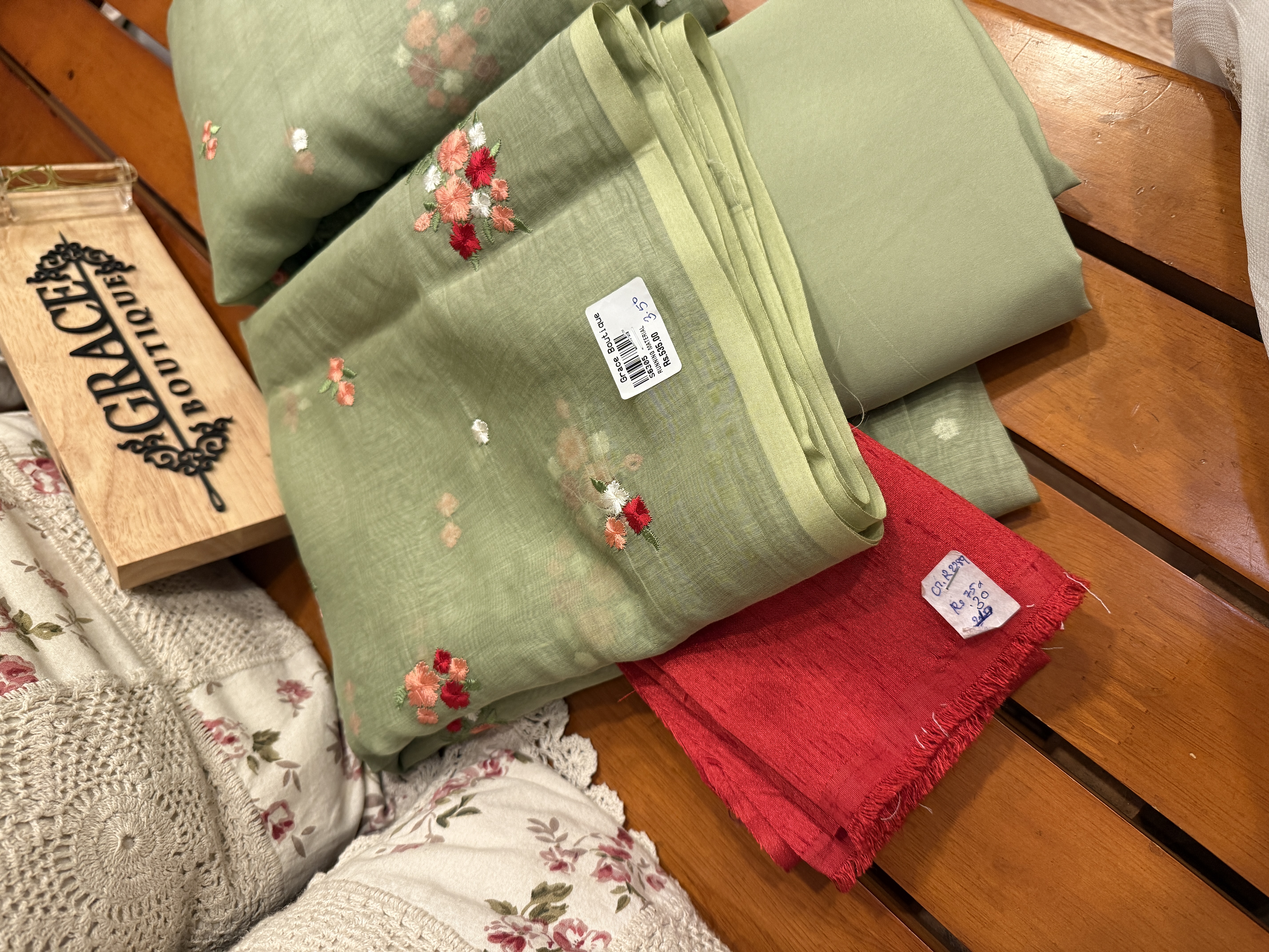 USK8-UNSTITCHED GREEN KURTHI SET(NEELIMA)